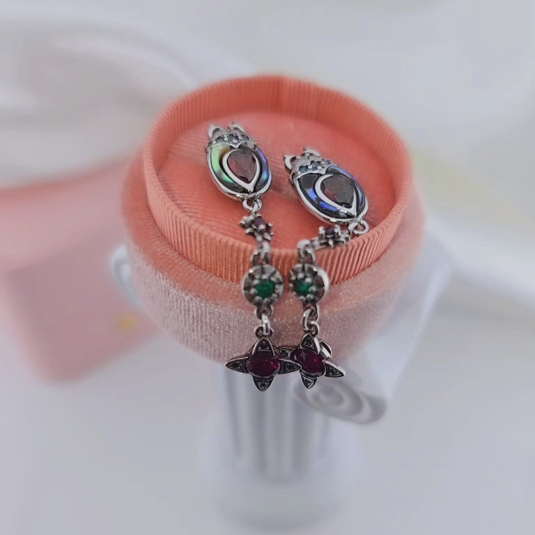 Experience the elegance and glamour of these Vintage Scarab Drop Earrings. Made with high-quality silver and adorned with stunning created diamonds, these earrings are the perfect addition to any outfit. Feel confident and luxurious with every wear.