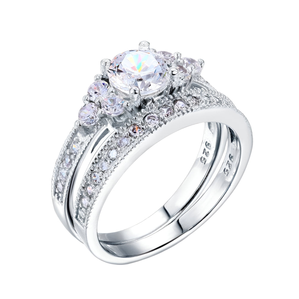 Indulge in the timeless beauty and everlasting brilliance of our Vintage Style 1.0 Ct Diamond 2-Pc Engagement Ring Set. Crafted with the finest created diamonds and sturdy 925 Sterling Silver, this ring is a symbol of eternal love and devotion. Sparkling like a natural diamond, it is the perfect adornment for you, your loved ones, and the one who holds your heart.