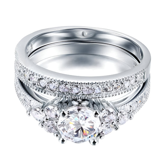 Vintage Style 1.0 Ct Diamond 2-Pc Engagement Ring Set