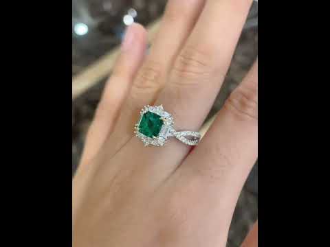 This 14k white gold Emerald Green Princess Cut Engagement Ring offers timeless luxury for the perfect proposal. Boasting a dazzling cushion-cut center stone encircled by a halo of round accent stones and detailed with a sophisticated twist band, this ring promises a stunningly radiant look. Combining affordability, sophistication and superior materials, your desired one will receive an exquisite and vintage-inspired ring.