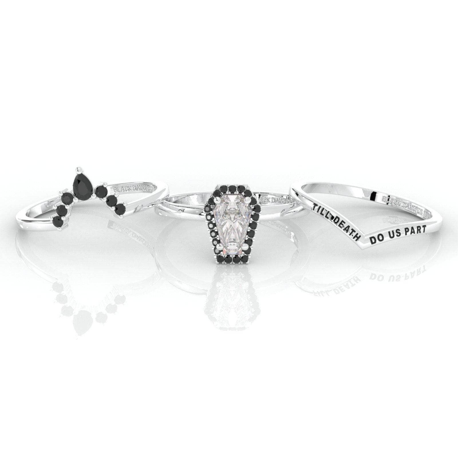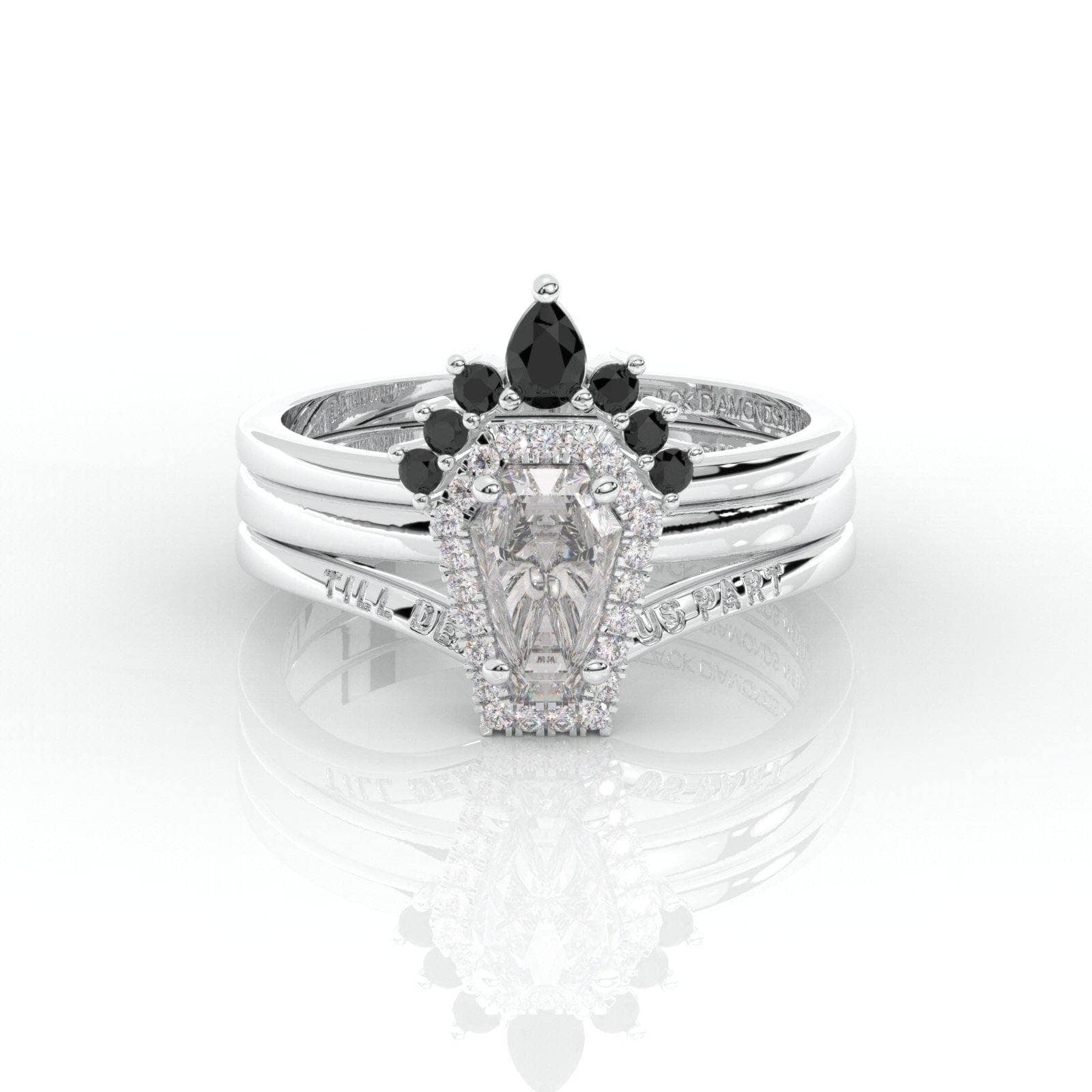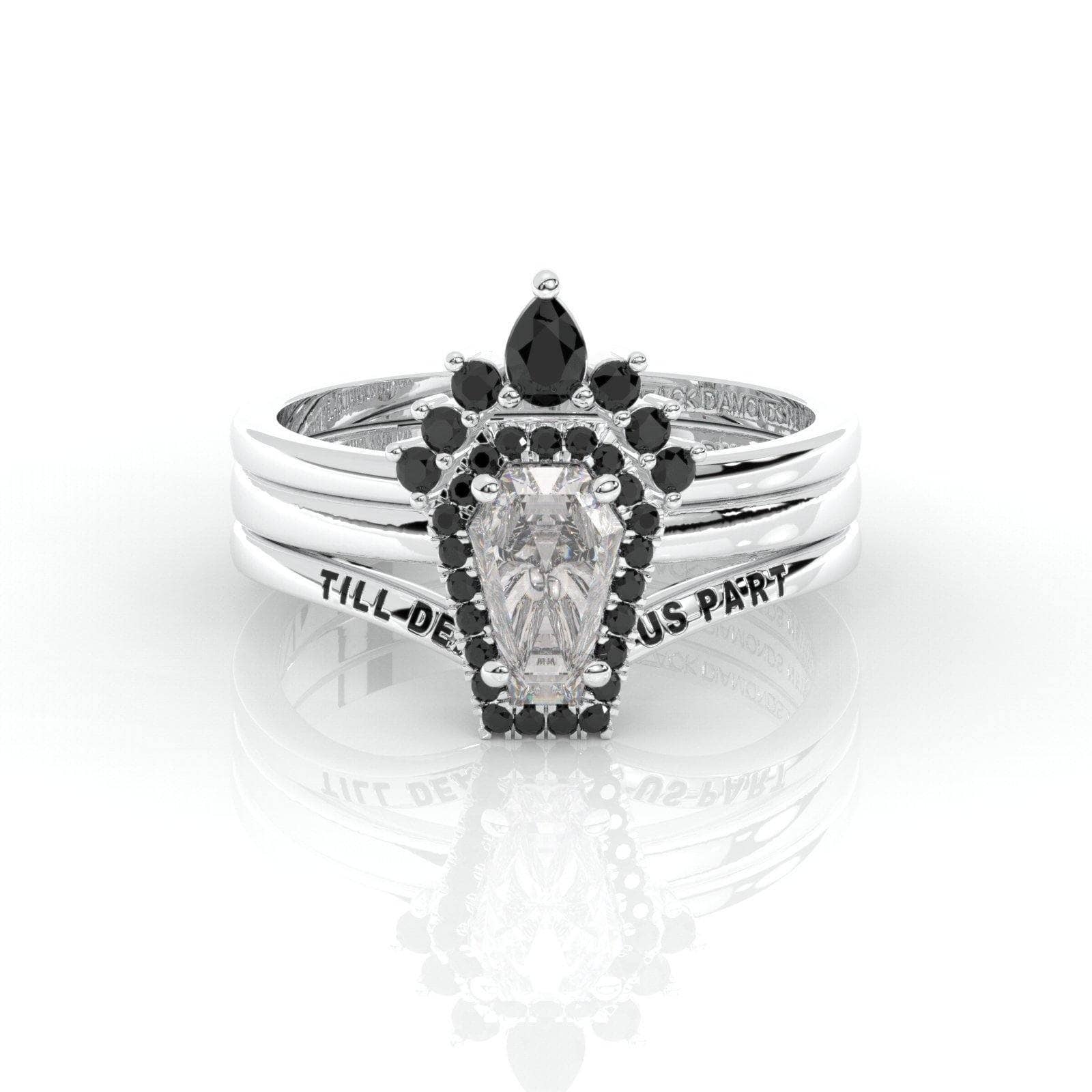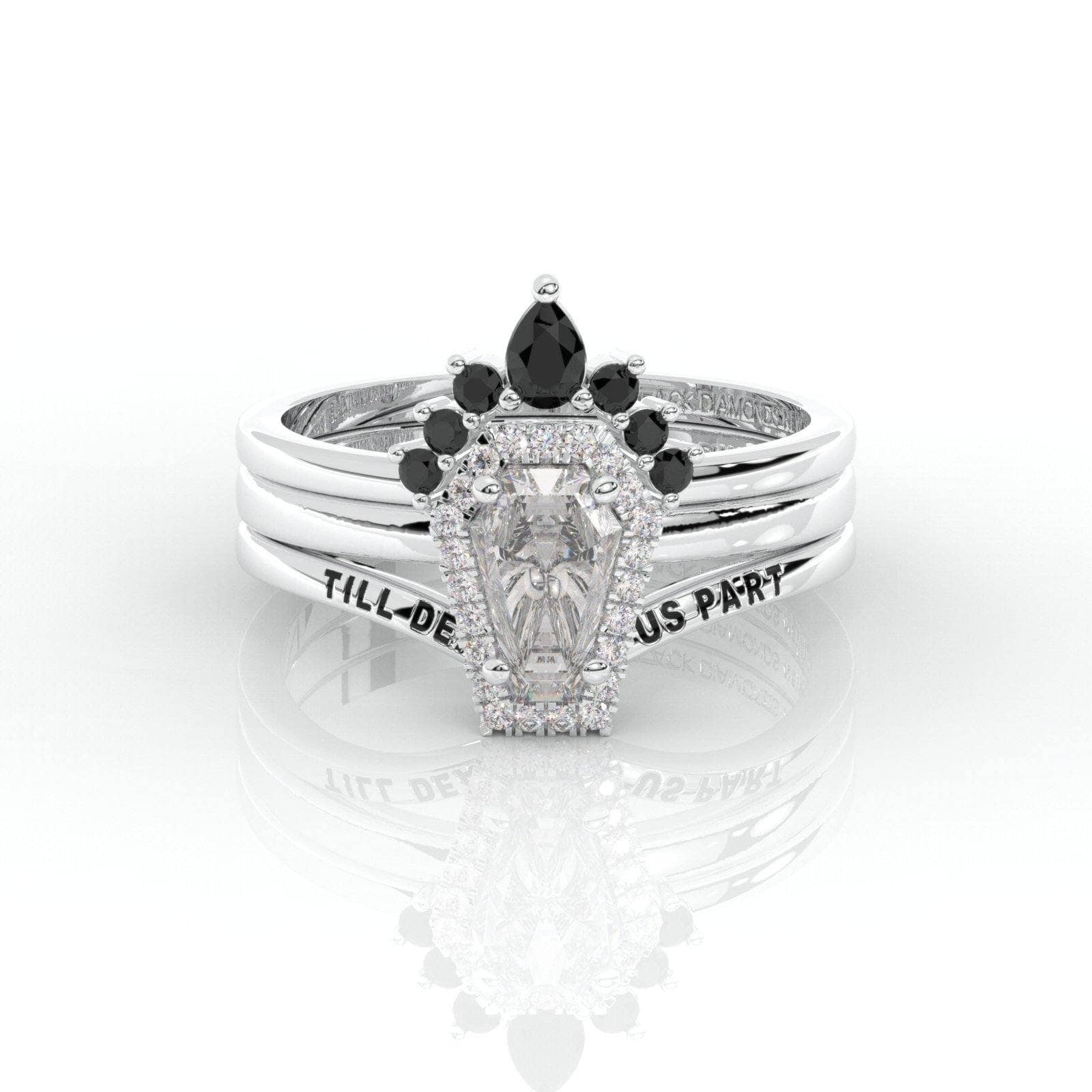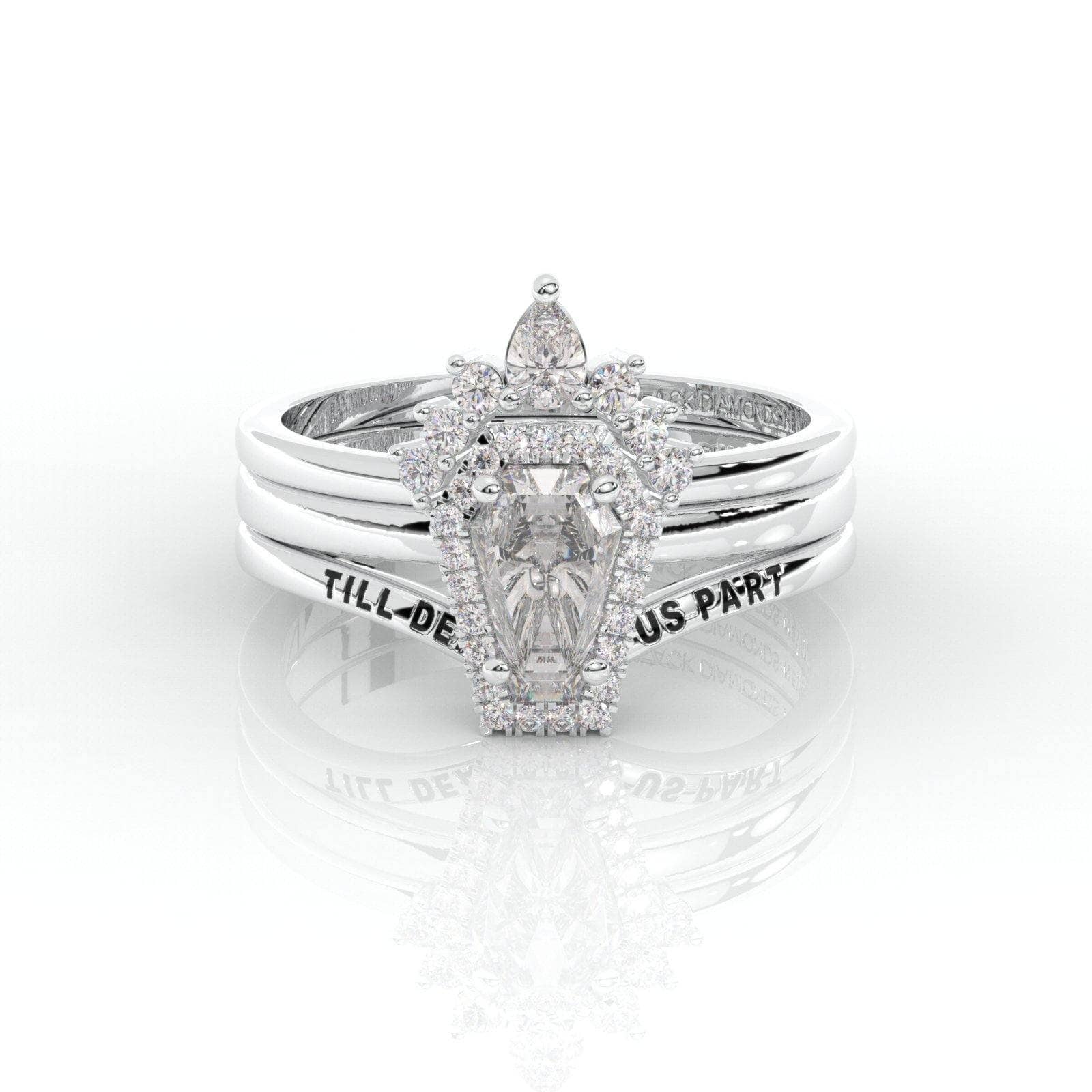 BDNY3797 Upgrade- Till Death Do Us Part Rings- Rare Coffin Cut Certified Moissanite 14k White Gold Ring Set