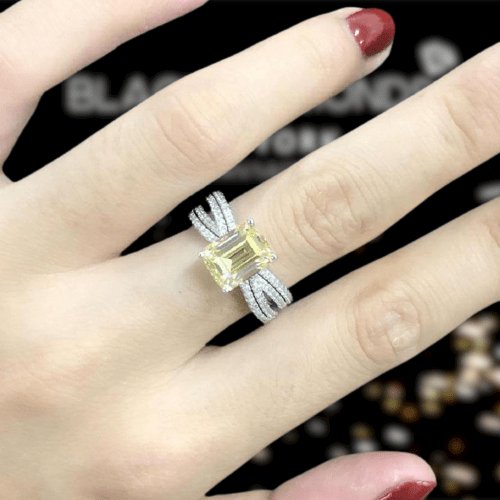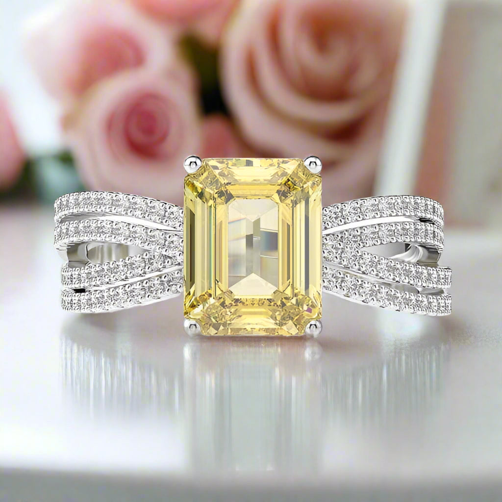 White Gold Yellow Sapphire 3.0ct Emerald Cut Engagement Ring