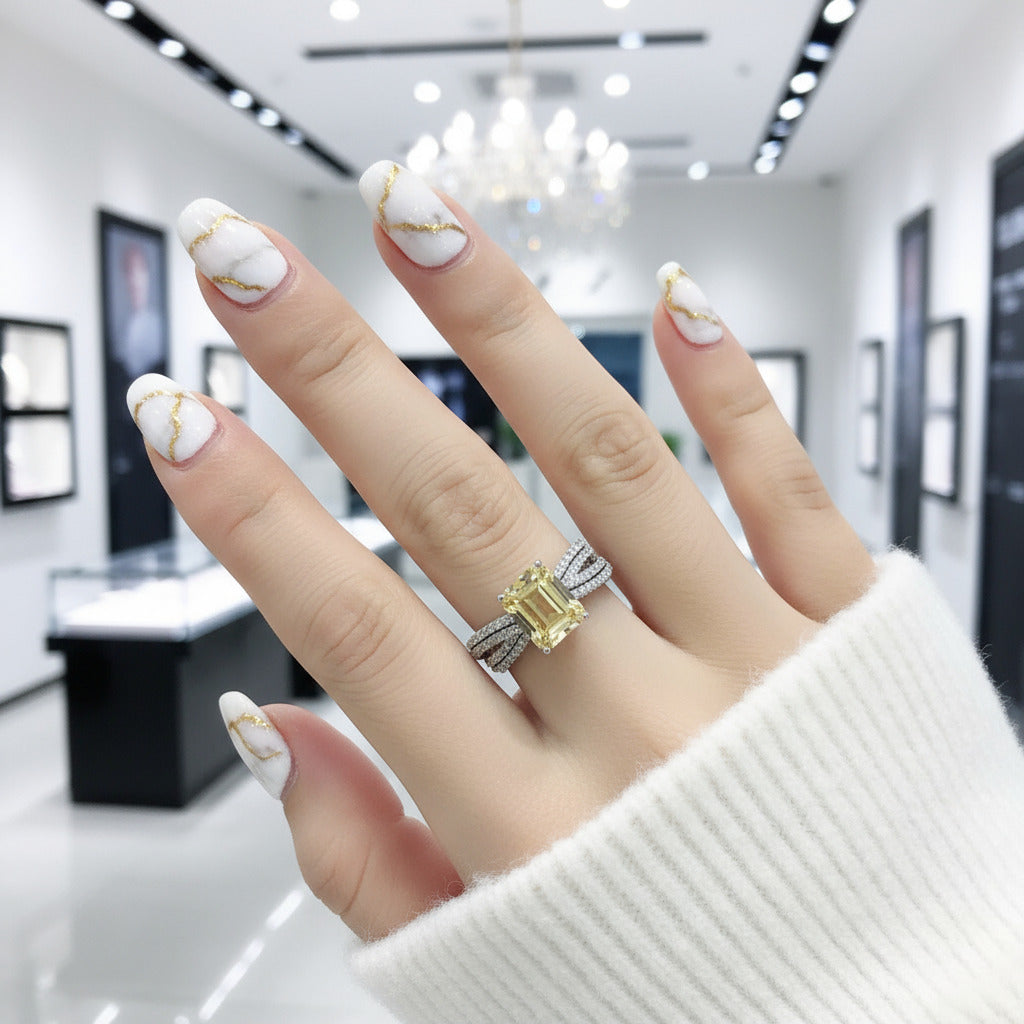 Stone Comparison: Falls between premium zirconium-based crystal and sapphire-grade simulants, with enhanced brilliance and clarity.
