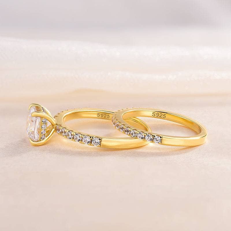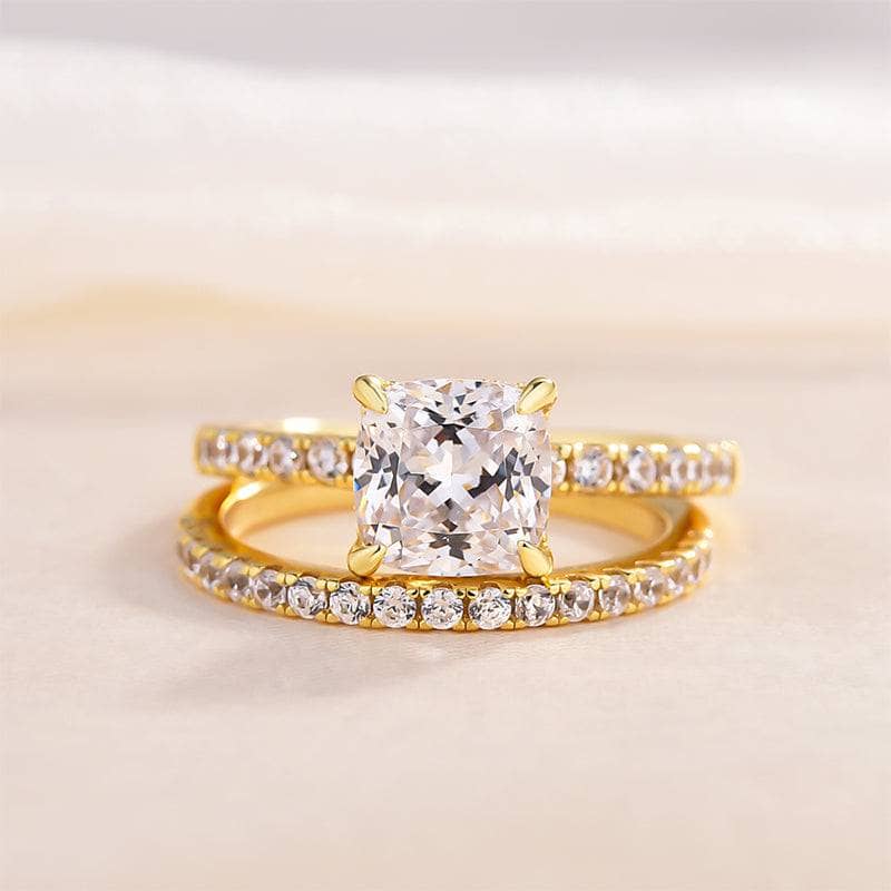 Yellow Gold 1.5 Carat Cushion Cut Ring Set
