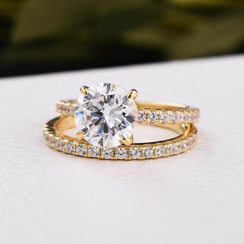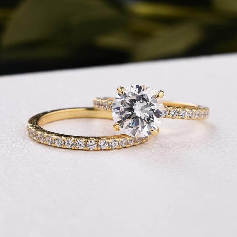 Yellow Gold Classic Round Cut Wedding Ring Set