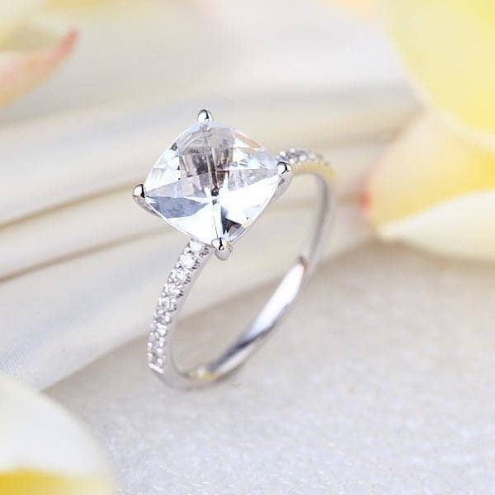 Ready to wow the world? This 0.12ct Natural Diamond 14K White Gold 2.5ct Cushion Cut Topaz Ring is perfect for you! The exquisite craftsmanship and high-quality materials make this stunning piece both luxurious and affordable. With its magnificent sparkles, you'll be glistening all day long!