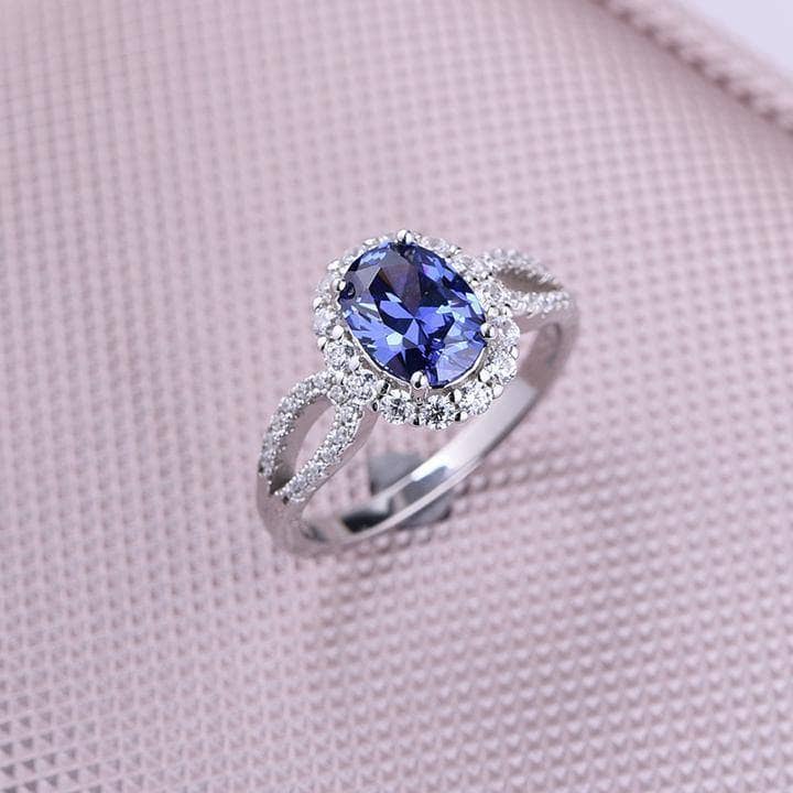 1.0 ct Blue Sapphire Oval Cut Halo Engagement Ring
