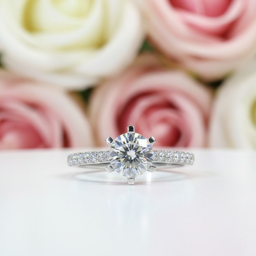 1.0 Ct Round Cut D Color Diamond 6 Prong Engagement Ring