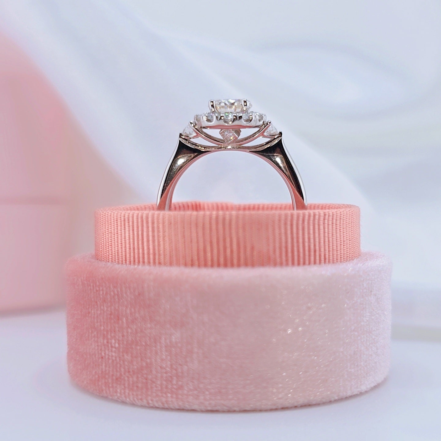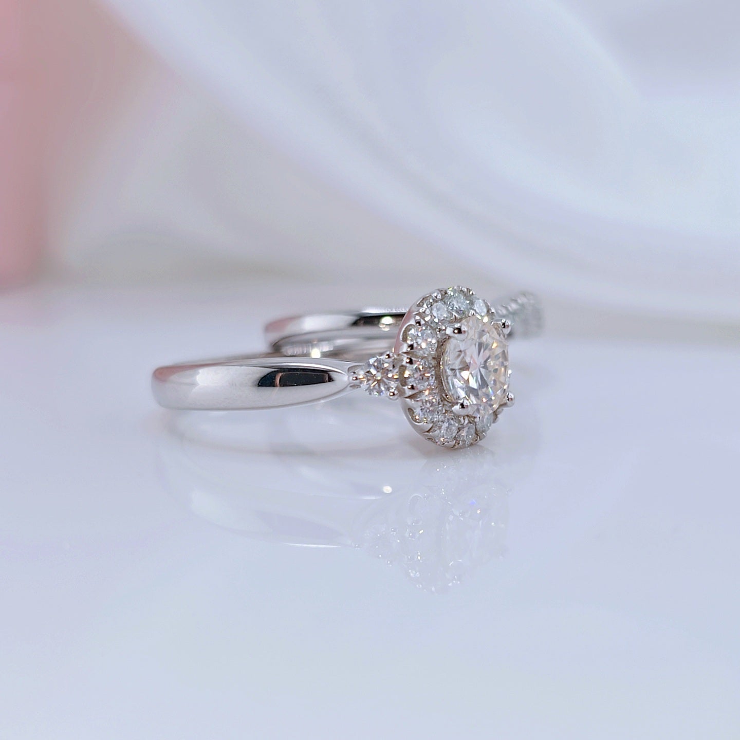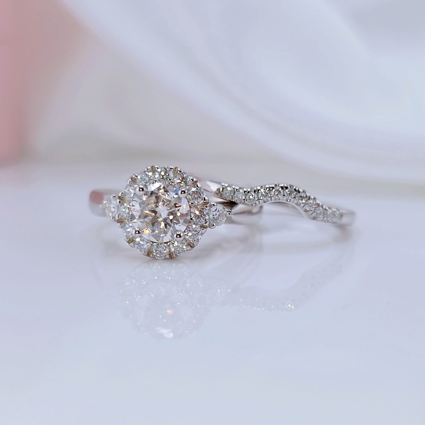 1.0 Ct Round Cut Diamond Halo Engagement Rings Set