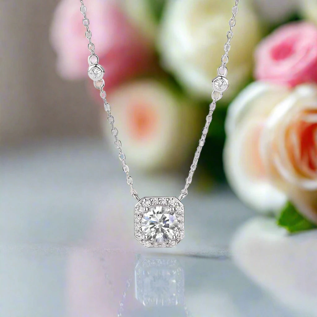 1.0 Ct Round Cut Diamond Halo Necklace