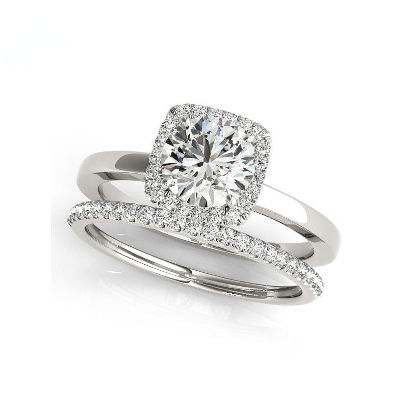 1.0 ct Round Cut Diamond Halo White Gold Ring Set