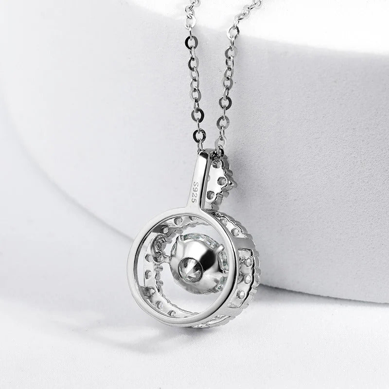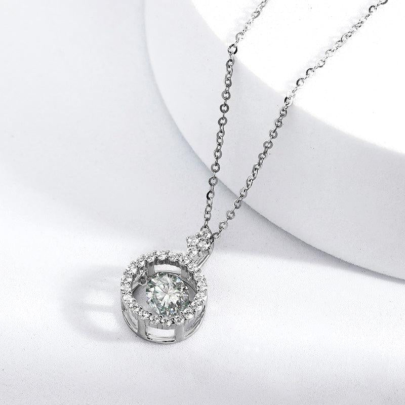 Make a lasting impression with our 1.0 Ct Round Certified Moissanite Necklace from Black Diamonds New York. This beautifully crafted necklace features a 1 carat, D color round cut moissanite set in 925 silver dipped 5x in 18k white gold. With its high-quality materials and breathtaking design, this necklace is a must-have for anyone looking to add a touch of glamour to their wardrobe.
