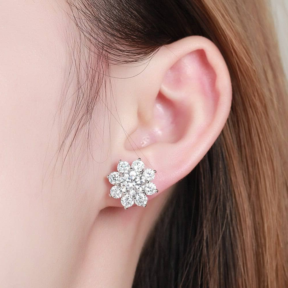1.0 Ct Snowflake Shaped 6.5mm Halo Diamond Stud Earrings