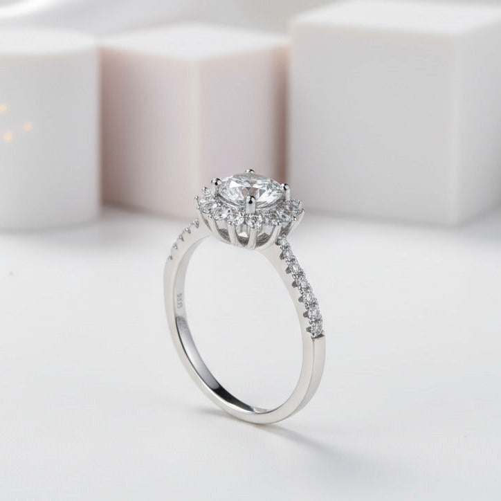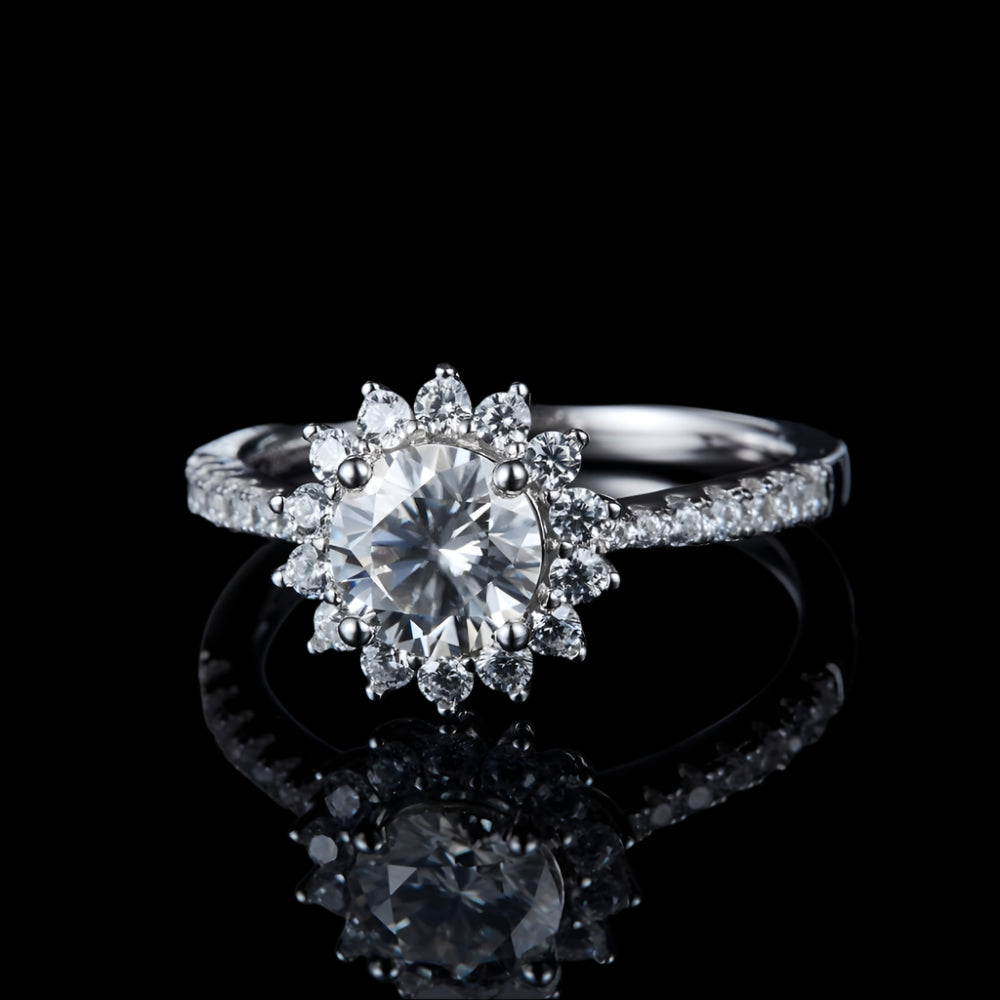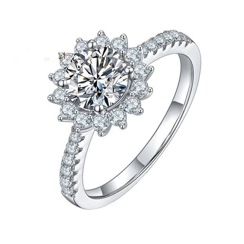 1.0Ct 6.5mm VVS1 Diamond Sun Flower Engagement Ring