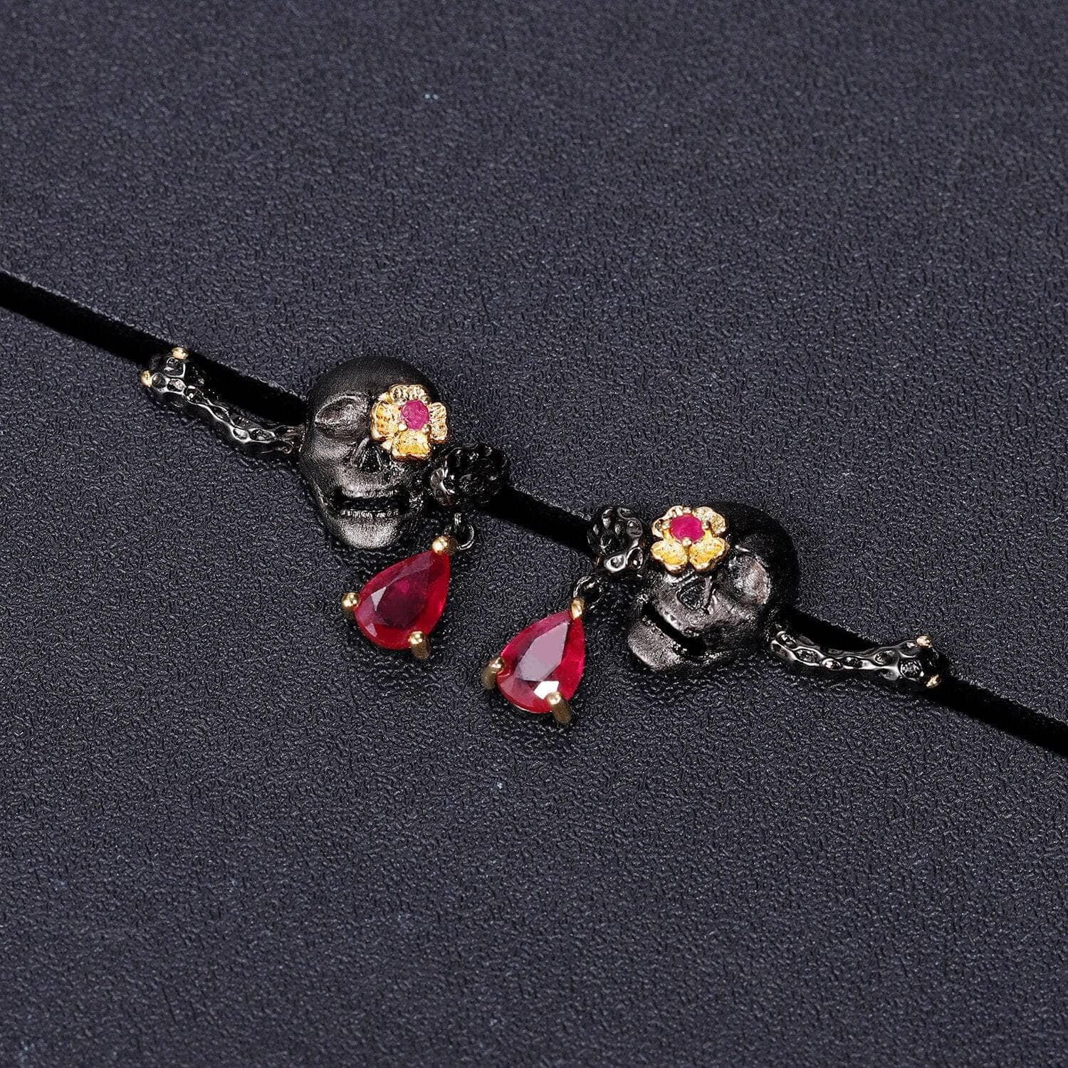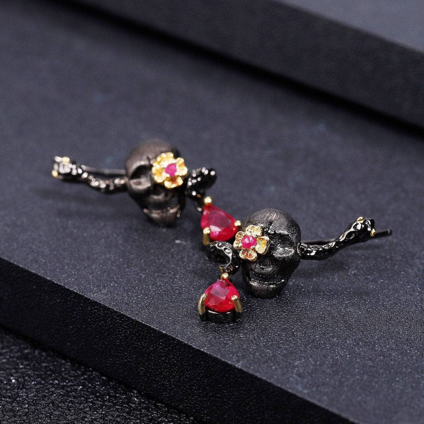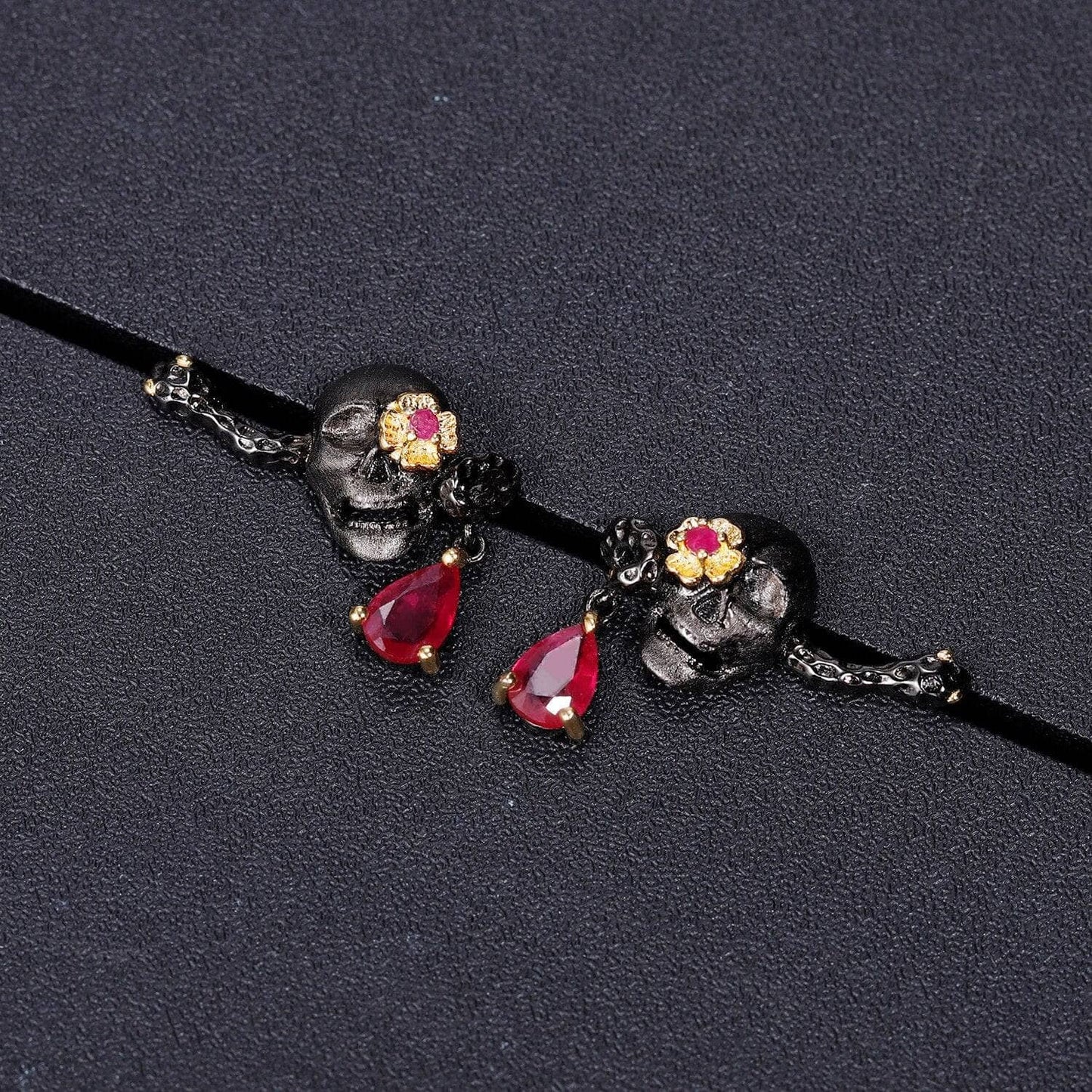 1.26Ct Natural Ruby Gemstone Skull Earrings