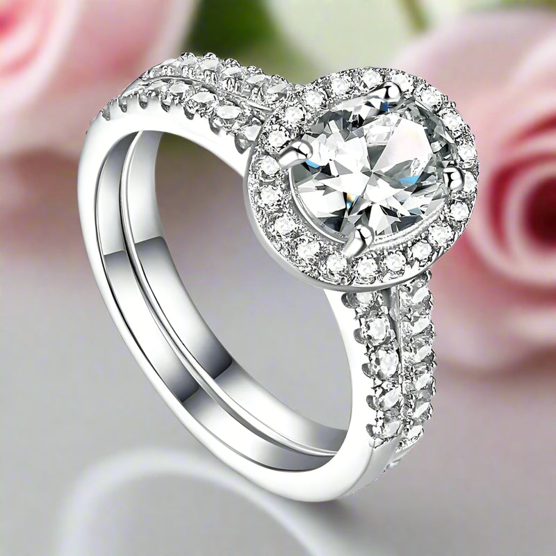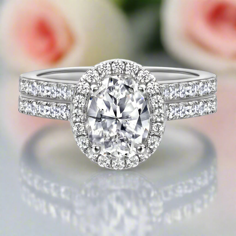 1.5 Ct Oval Cut Diamond Halo Engagement Ring Set