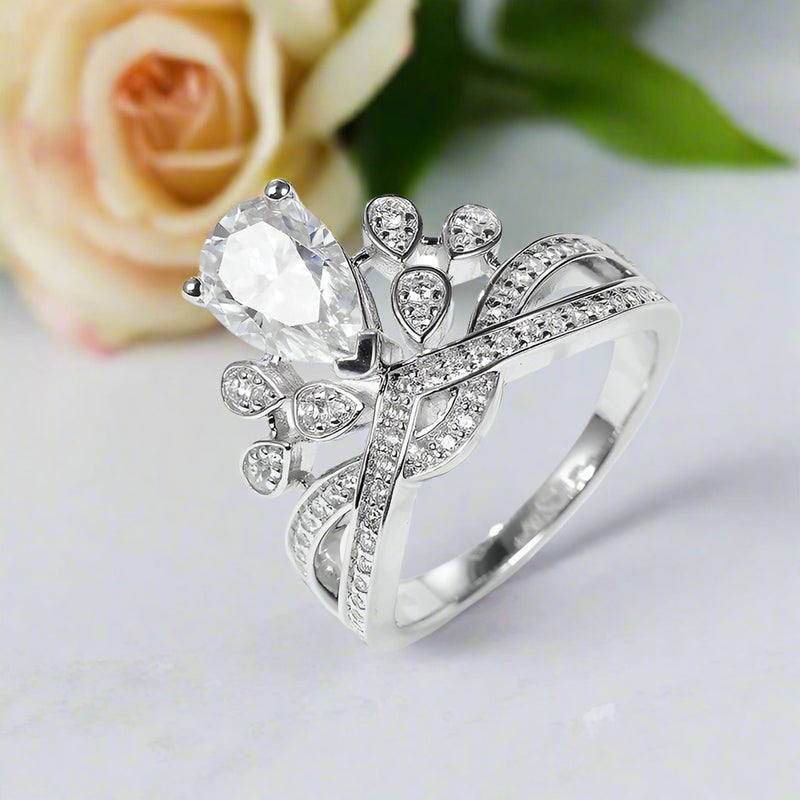 1.5 Ct Pear Diamond Crown Style Engagement Ring