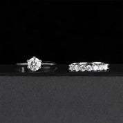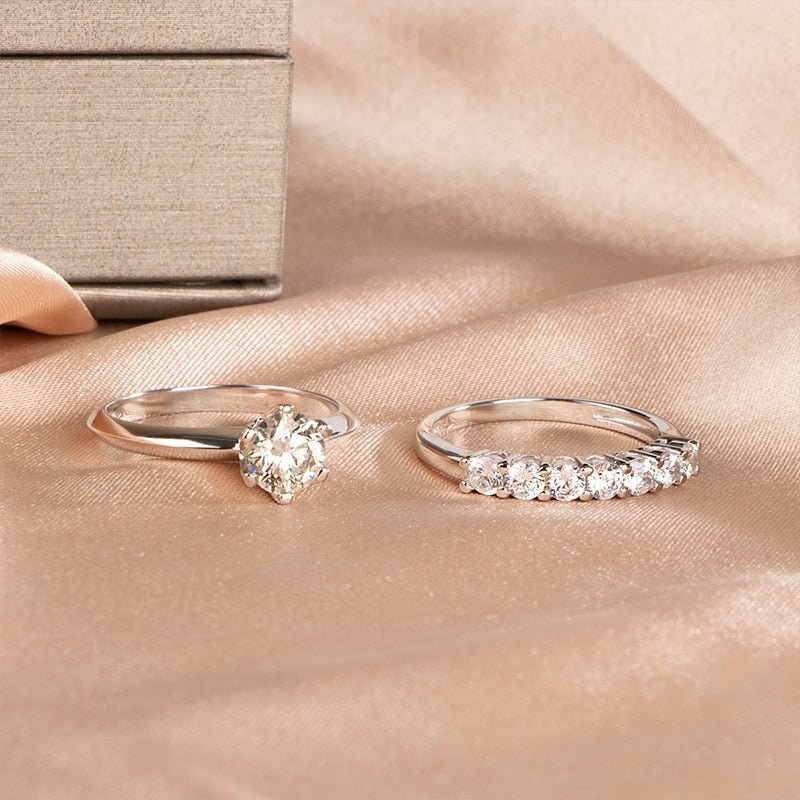 Experience ultimate sophistication with our 1.7 Ctw Round Certified Moissanite Engagement Ring Set from Black Diamonds New York. The center stone sparkles with a brilliance rivaling diamond's, and the exquisite craftsmanship and affordability of this luxurious set will make your special moments shine bright for a lifetime. Adorned with a 925 silver dipped 5x in 18k white gold, this dazzling ring set promises to captivate and impress with its timeless elegance and beauty.