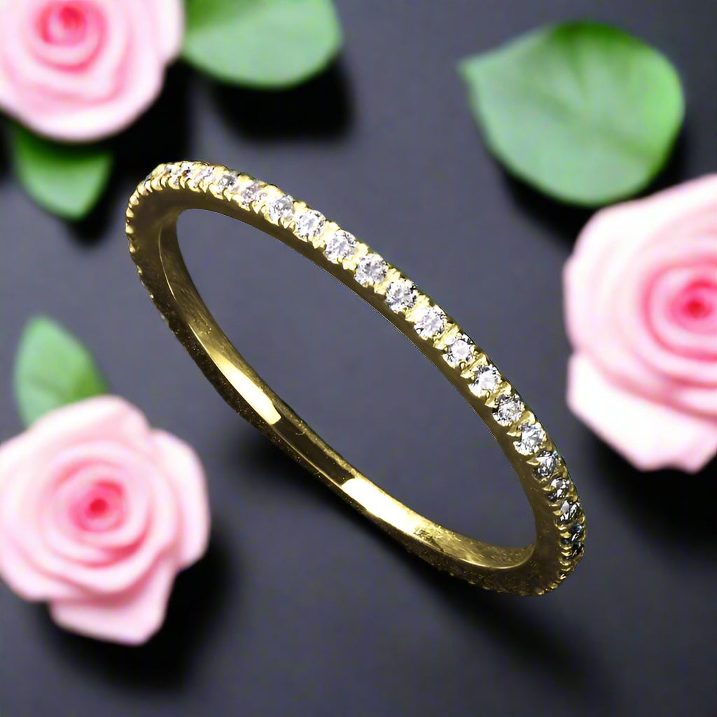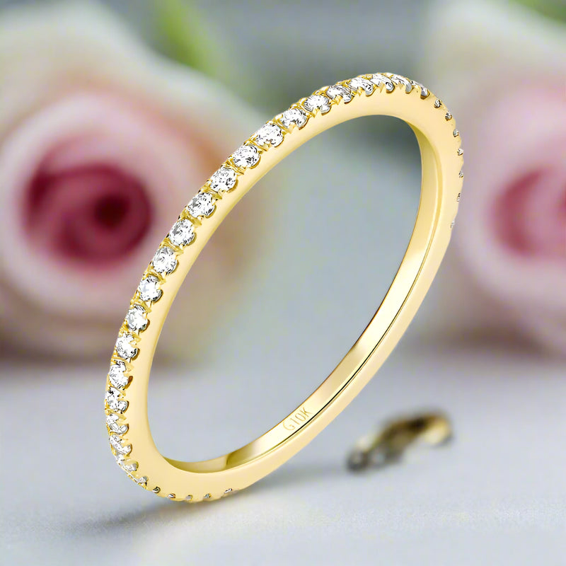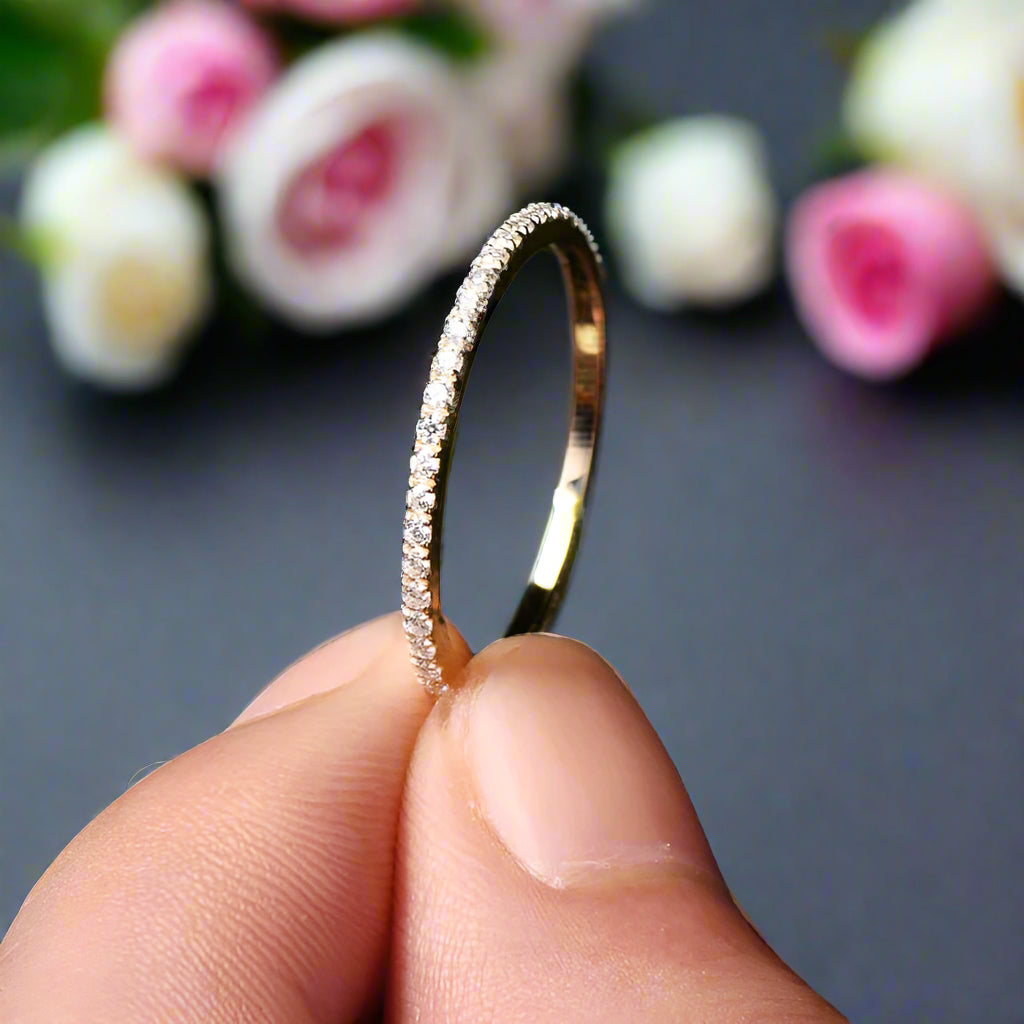 Looking for a versatile and stylish ring to enhance your jewelry collection? Look no further than our 10k Solid Gold Stackable Certified Moissanite Wedding Band. With its dazzling 1.2mm round cut moissanite stones, this stackable ring offers a stunning and eye-catching design. Treat yourself to a piece of luxury that won't break the bank.