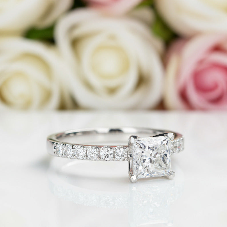 10k White Gold 1.0 Ct Princess Cut Diamond Engagement Ring
