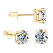 Shine bright like a diamond with these 10k Yellow Gold Certified Moissanite Stud Earrings. The stunning 1.2 carat round cut moissanite stones are guaranteed to catch the light and sparkle all day long. Made with high quality materials and expert craftsmanship, these earrings are both gorgeous and affordable. Elevate your style with these dazzling earrings from Black Diamonds New York.