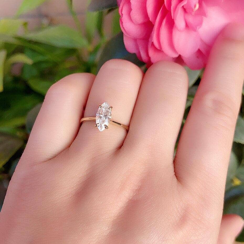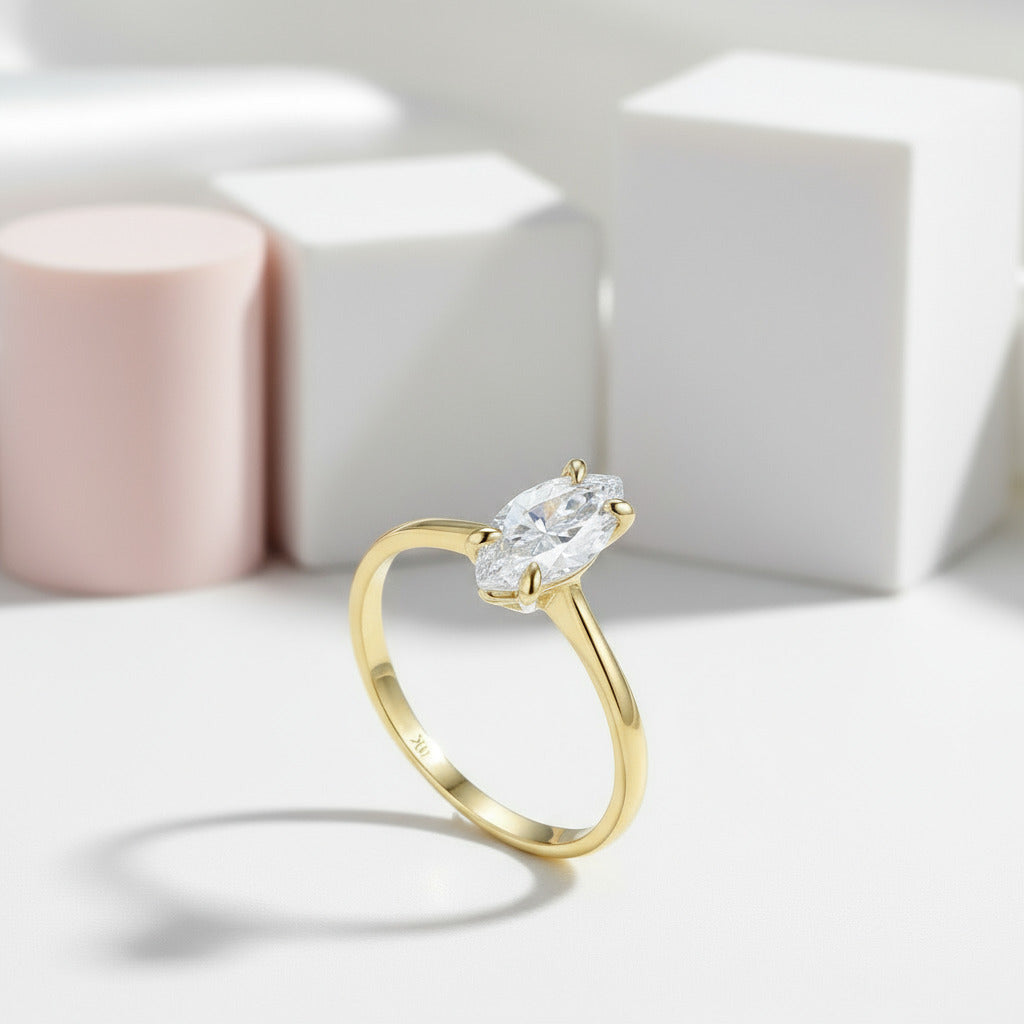 10K Yellow Gold Marquise Cut Certified Moissanite Ring