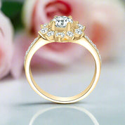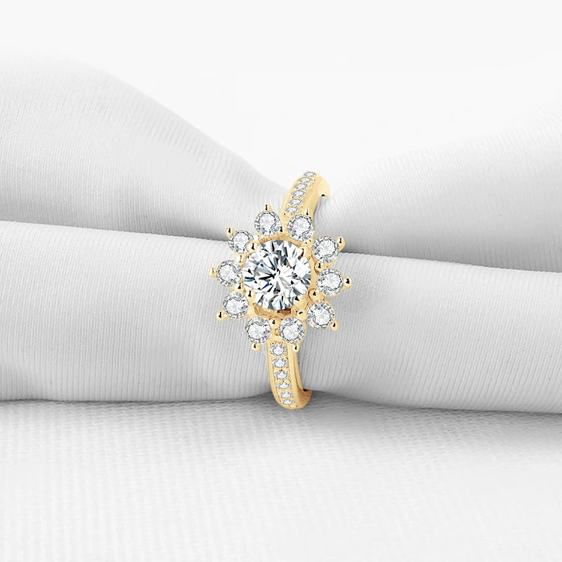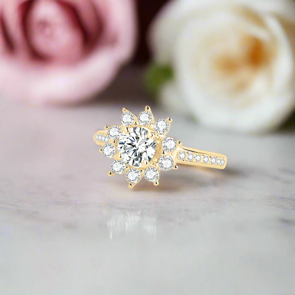 10k Yellow Gold Round Diamond Sunflower Shaped Engagement Ring