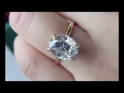 Make an unforgettable proposal with this gorgeous and sparkly 10k yellow gold solitaire moissanite engagement ring. Show your special someone just how much they mean to you with this beautiful ring featuring a 3 carat oval cut stone of astounding VVS clarity. This stunning ring is both affordable and of the highest quality, perfect for a proposal your love will never forget.