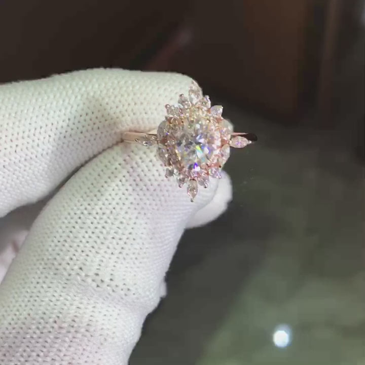 14k Gold Oval Cut 1.0 Ct Diamond Antique Flower Engagement Ring