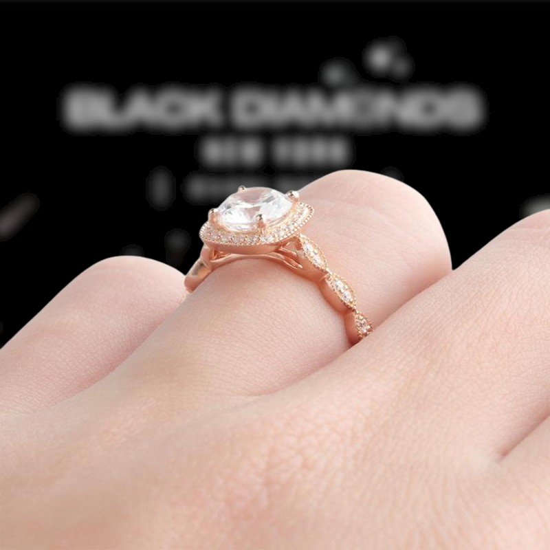Add a dose of sparkle and elegance to your special day with our 14k Rose Gold 1.2 Ct Round Cut Certified Moissanite Halo Engagement Ring by Black Diamonds New York. Captivating, stunning and incredibly beautiful, it is crafted of gorgeous rose gold with an exquisite round cut centerpiece for a timeless feminine look. With its halo of moissanites and a high quality construction, your partner will be enchanted by the sheer beauty of this gorgeous and affordable engagement ring.