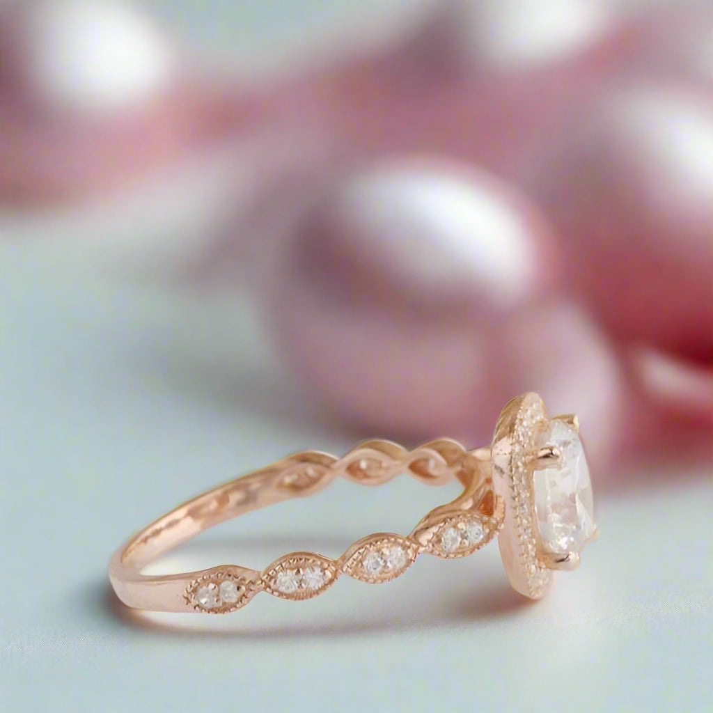 14k Rose Gold 1.2 Ct Round Cut Diamond Halo Engagement Ring