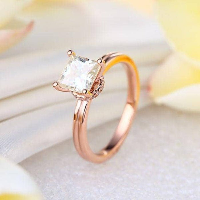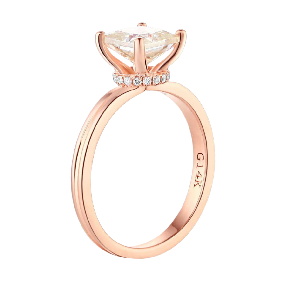 This exquisite 14k Rose Gold 1ct Princess Cut Diamond is a star in a class of its own. Meticulously crafted with a magnificent princess cut and subtle hidden halo stones, its luxurious design and outstanding quality make it the perfect choice for a timelessly elegant piece of jewelry. Shine with sophistication and grace!