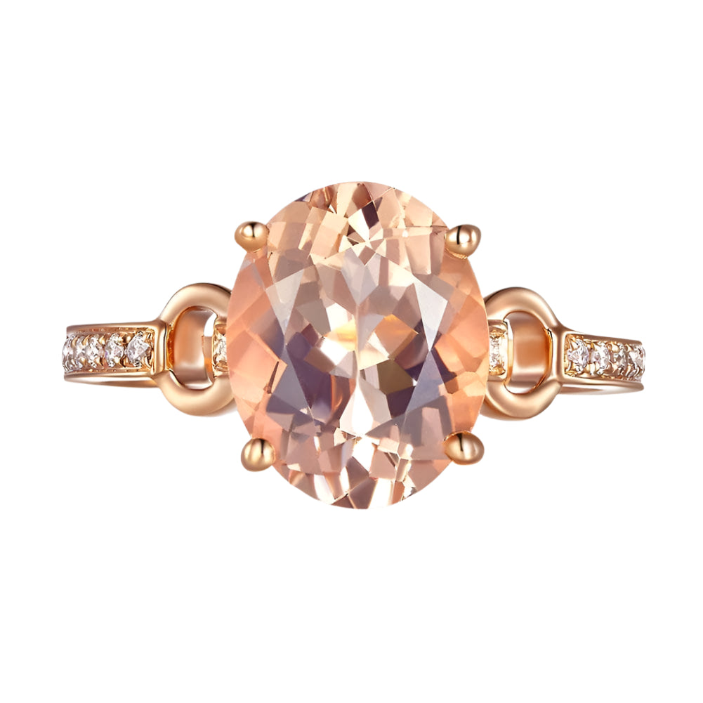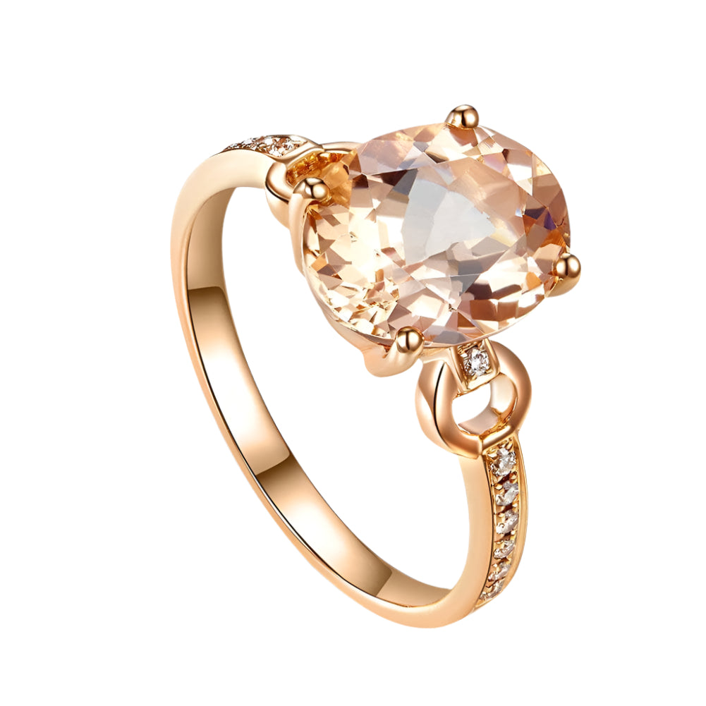14k Rose Gold 3.5 Ct Oval Peach Morganite 0.09 Ct Natural Diamond Ring