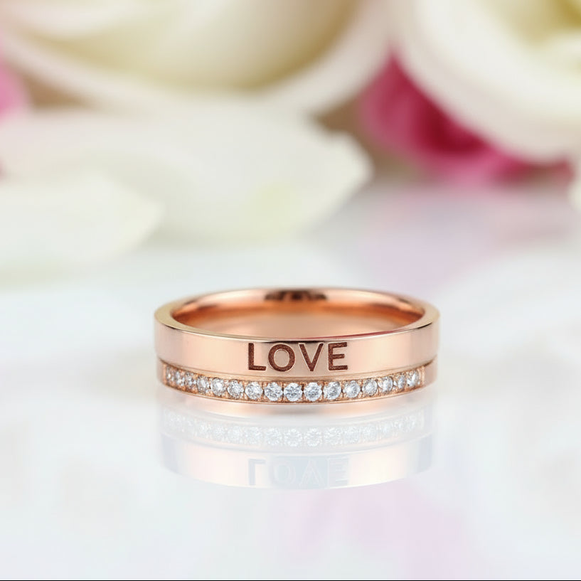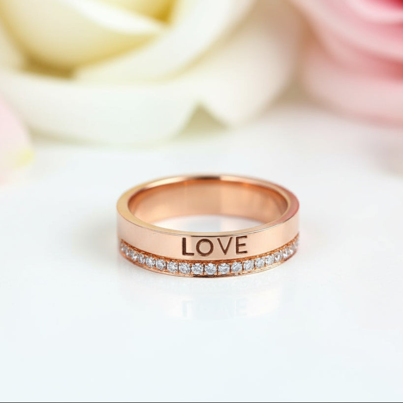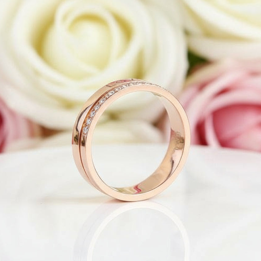 14k Rose Gold Love Wedding Band 0.12ct Natural Diamonds