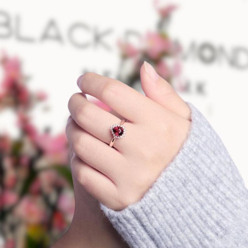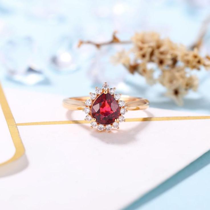 14k Rose Gold Pear Cut Garnet Diamond Halo Engagement Ring