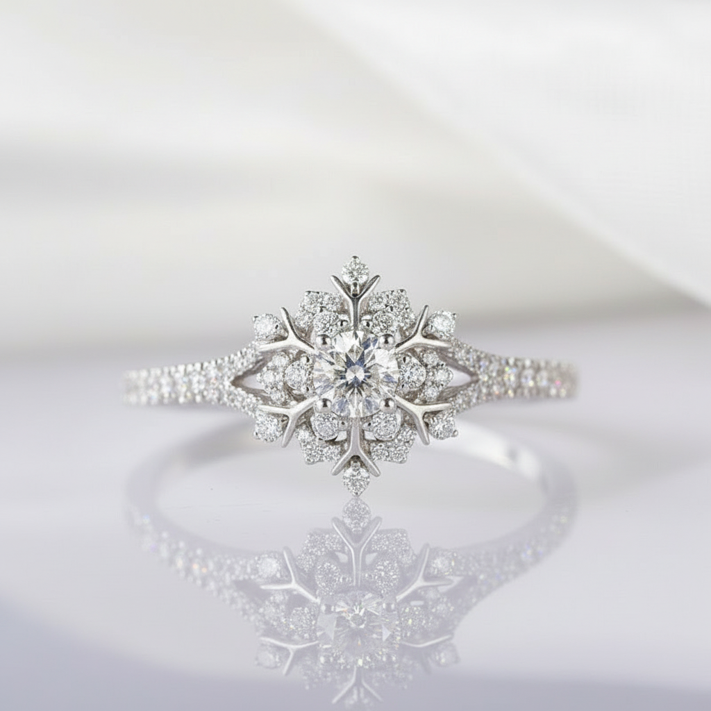 14K White Gold 0.3ct 4mm Diamond Snow Flake Engagement Ring