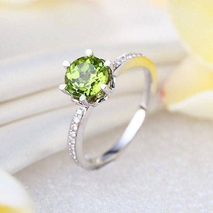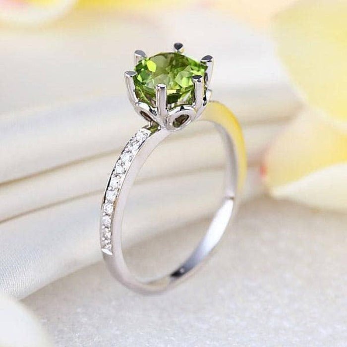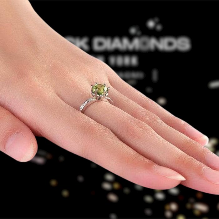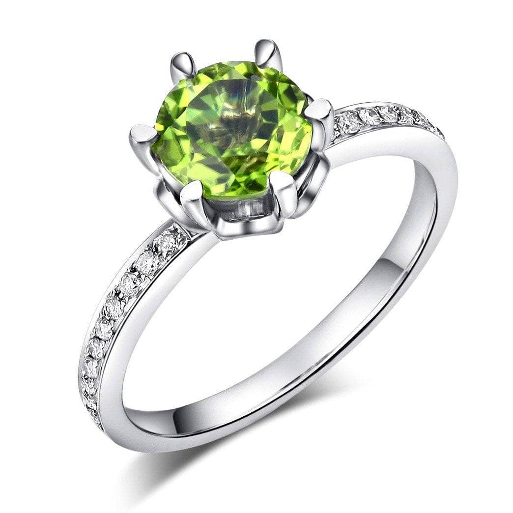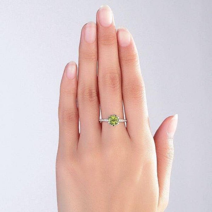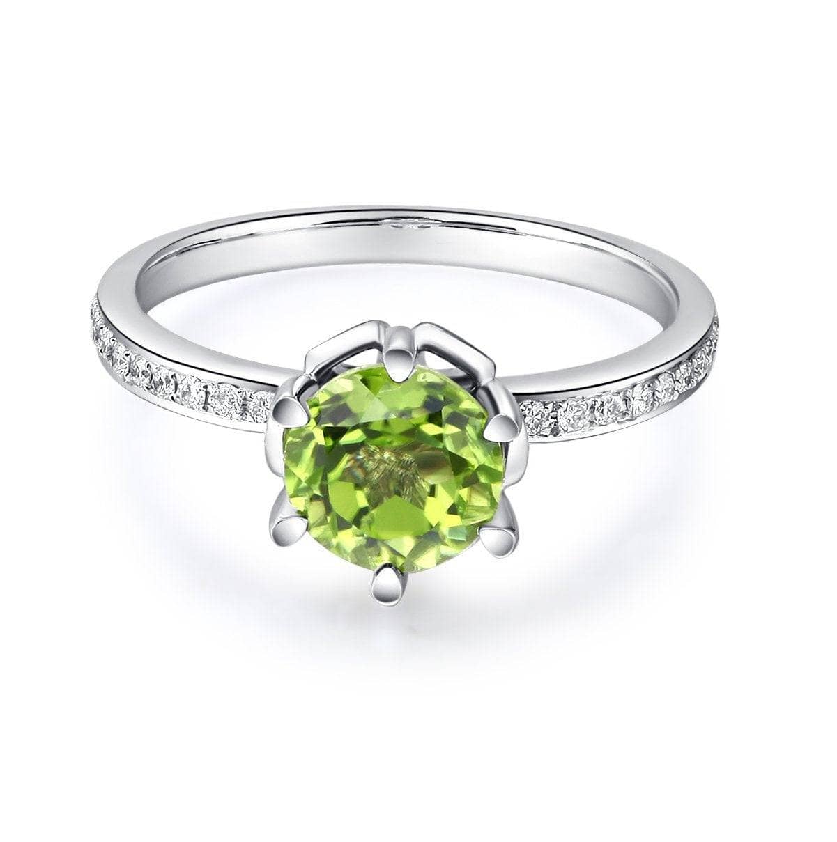 If you want something truly special, then check out this amazing 14k White Gold 1.4ct Peridot 0.14 Ct Natural Diamond Ring. The round cut center stone and side stones are brilliantly faceted to produce a stunning and sparkly finish. Not only is it stunningly beautiful, the quality is also high and the price is surprisingly affordable. Get your hands on this dazzling piece today and start looking chic!