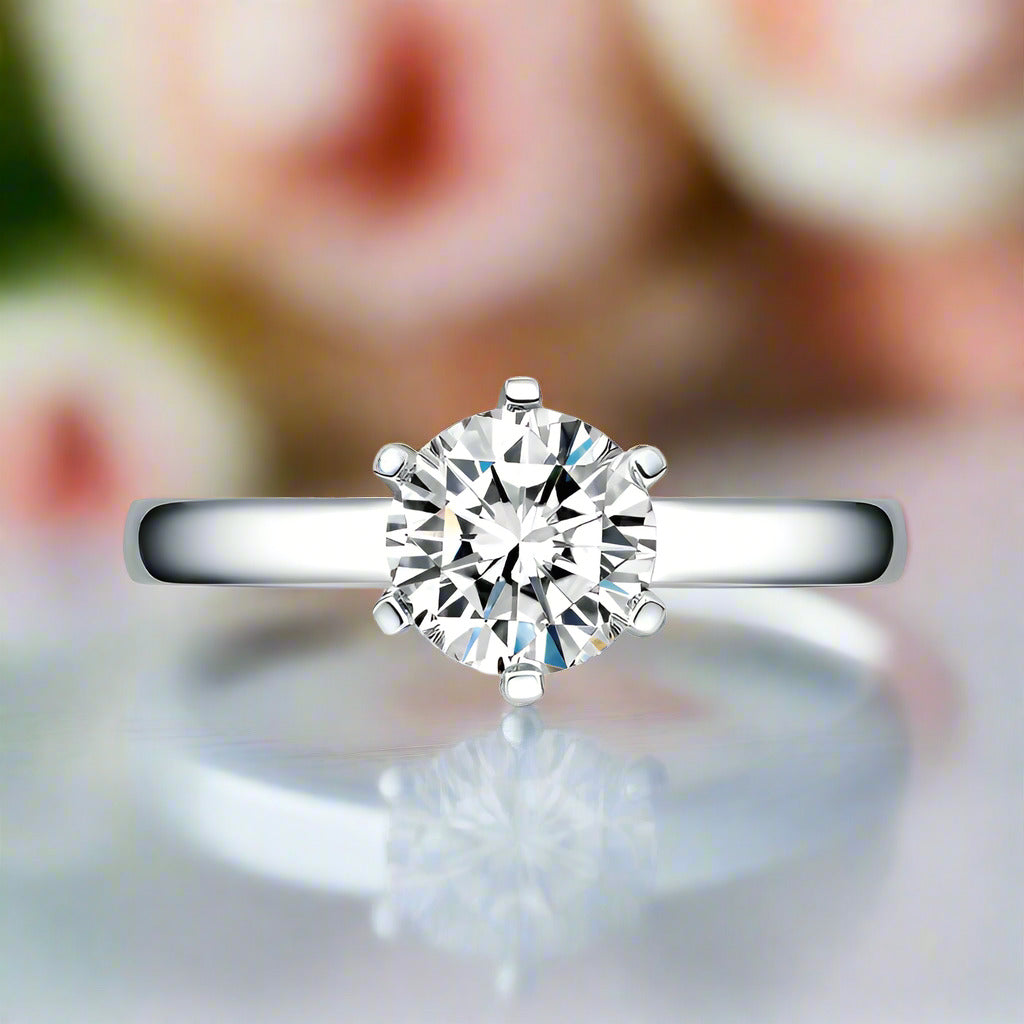 14k White Gold 1ct Diamond 6 Claws Engagement Ring
