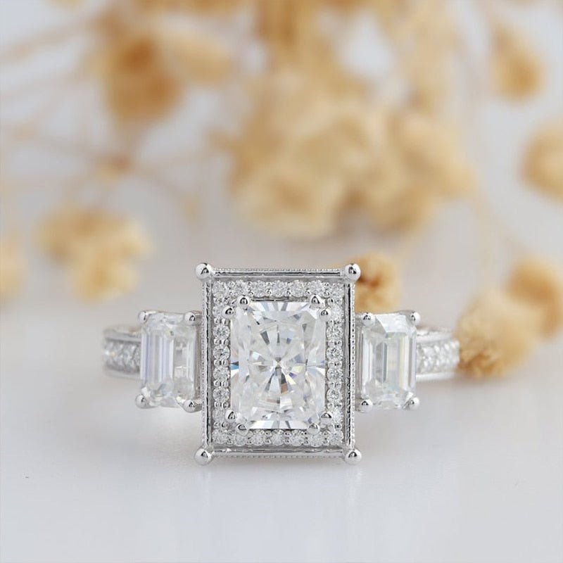 14k White Gold 2.0 Ct Radiant Cut Diamond 3 Stone Halo Engagement Ring