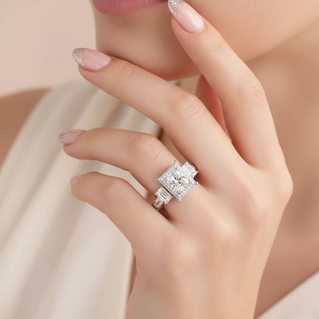 Stone Comparison: Sits brilliantly between Certified Moissanite and CVD Lab-grown Diamonds.