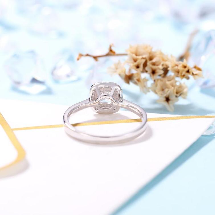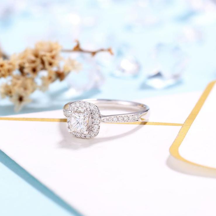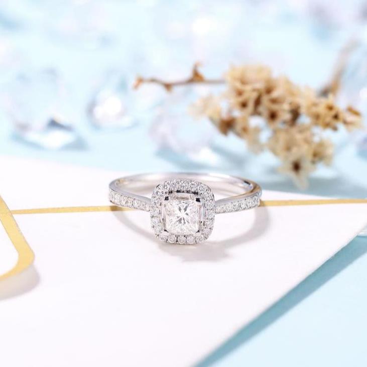 14k White Gold 4mm Princess Cut Diamond Halo Engagement Ring