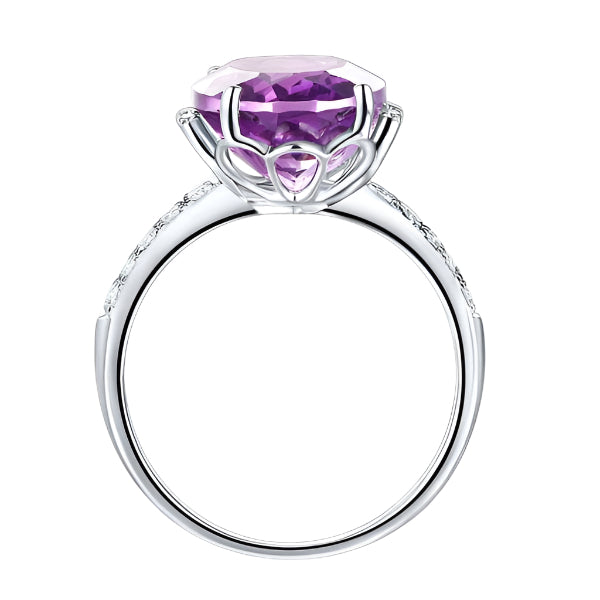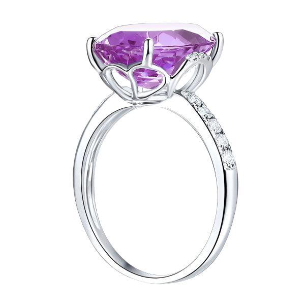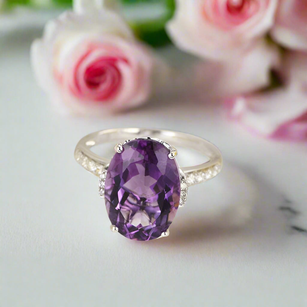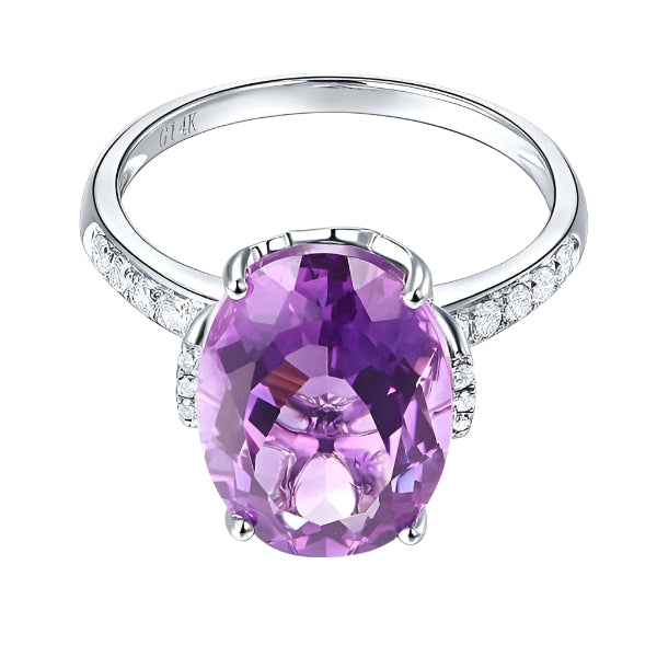 Boast in luxury with this stunning 14k White Gold 5.75 Ct Oval Purple Amethyst 0.22 Ct Natural Diamond Ring. Mesmerize with this band's exquisite oval cut amethyst and natural diamonds, which offer a gorgeous, sparkly look. This high quality piece is both affordable and luxurious, making it perfect for any ensemble.