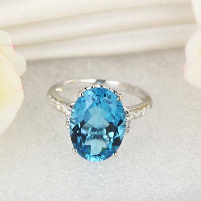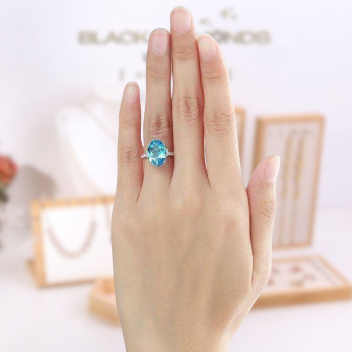 14K White Gold 6.5 Ct Oval Swiss Blue Topaz 0.22 Ct Natural Diamond