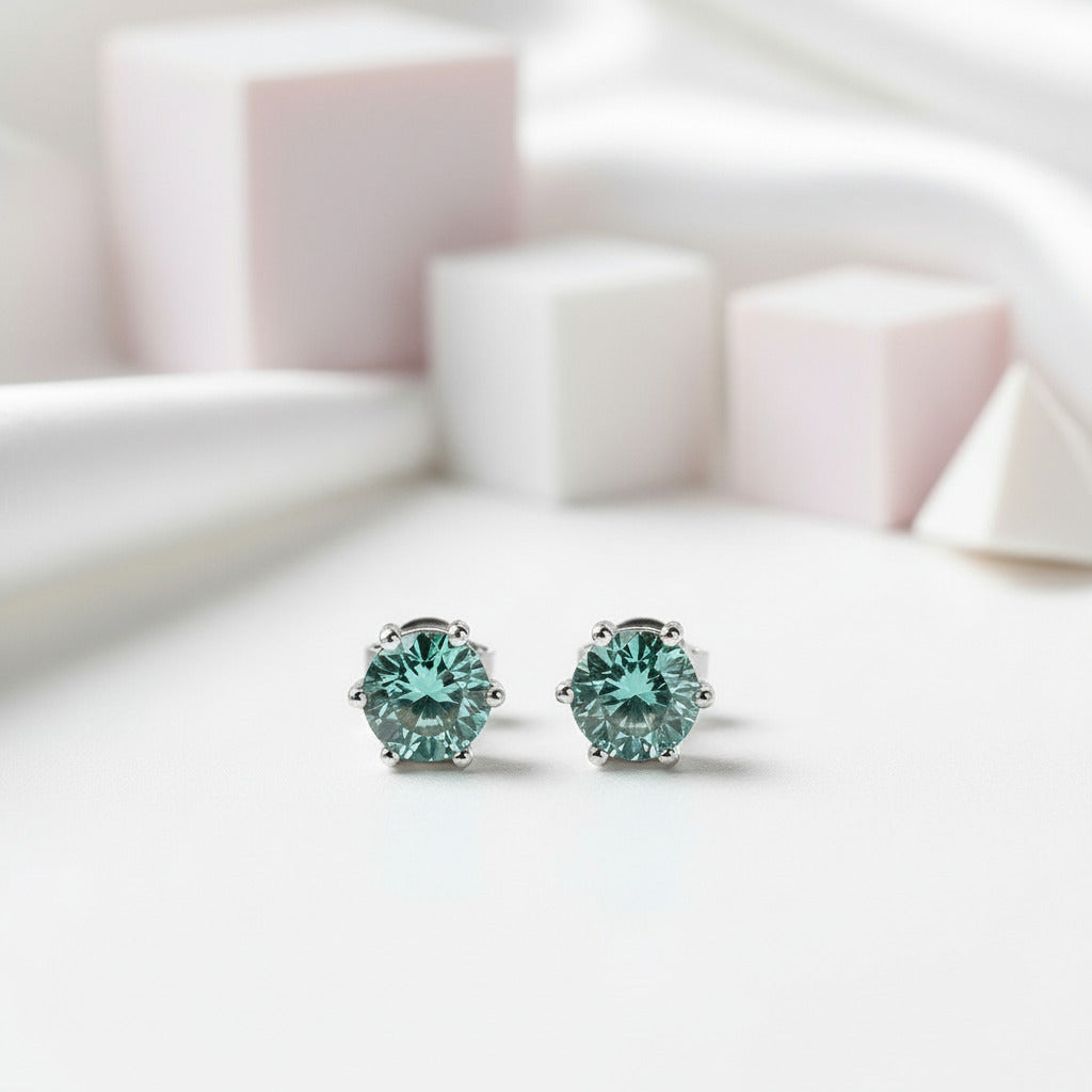 14k White Gold 6-Prong Round Diamond Stud Earrings