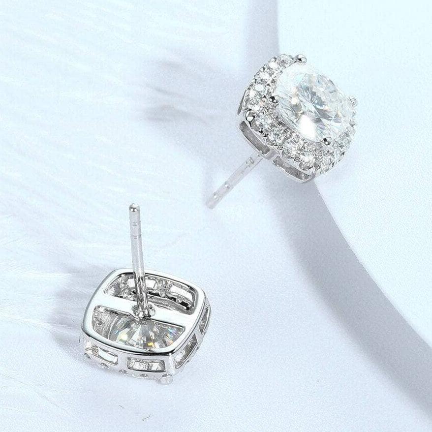 14k White Gold 6mm Cushion Cut Diamond Halo Stud Earrings