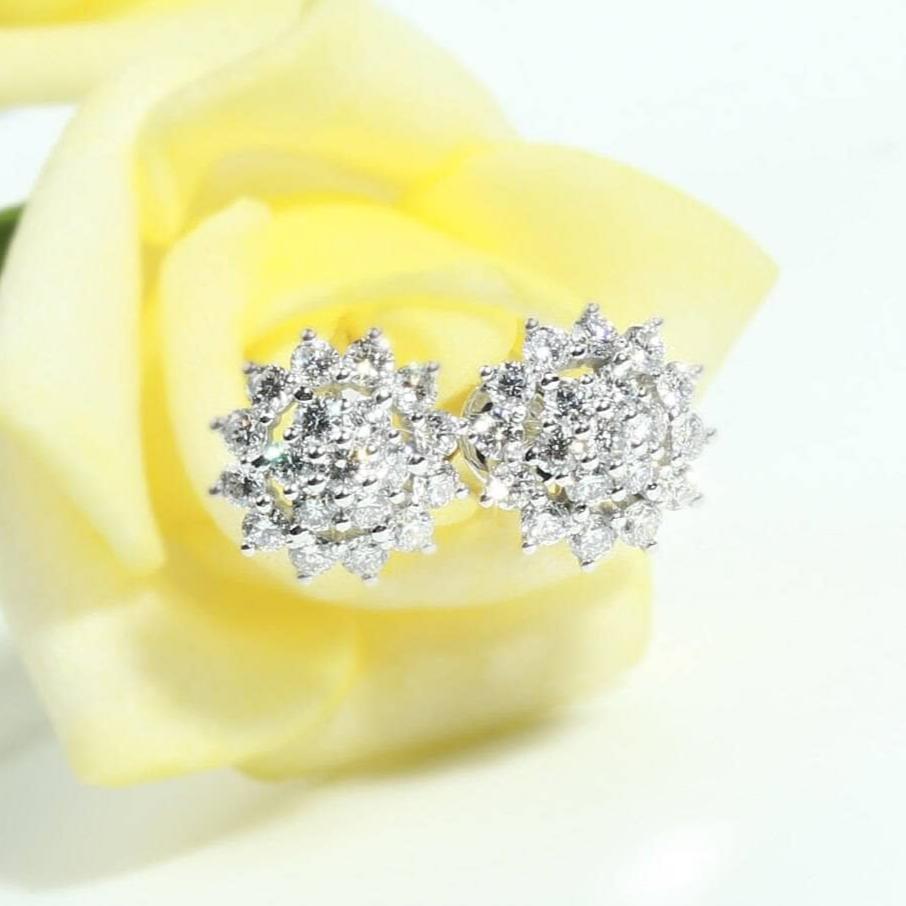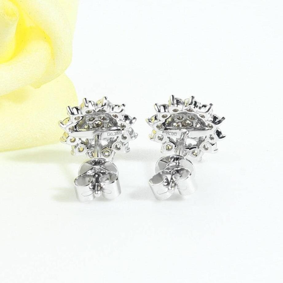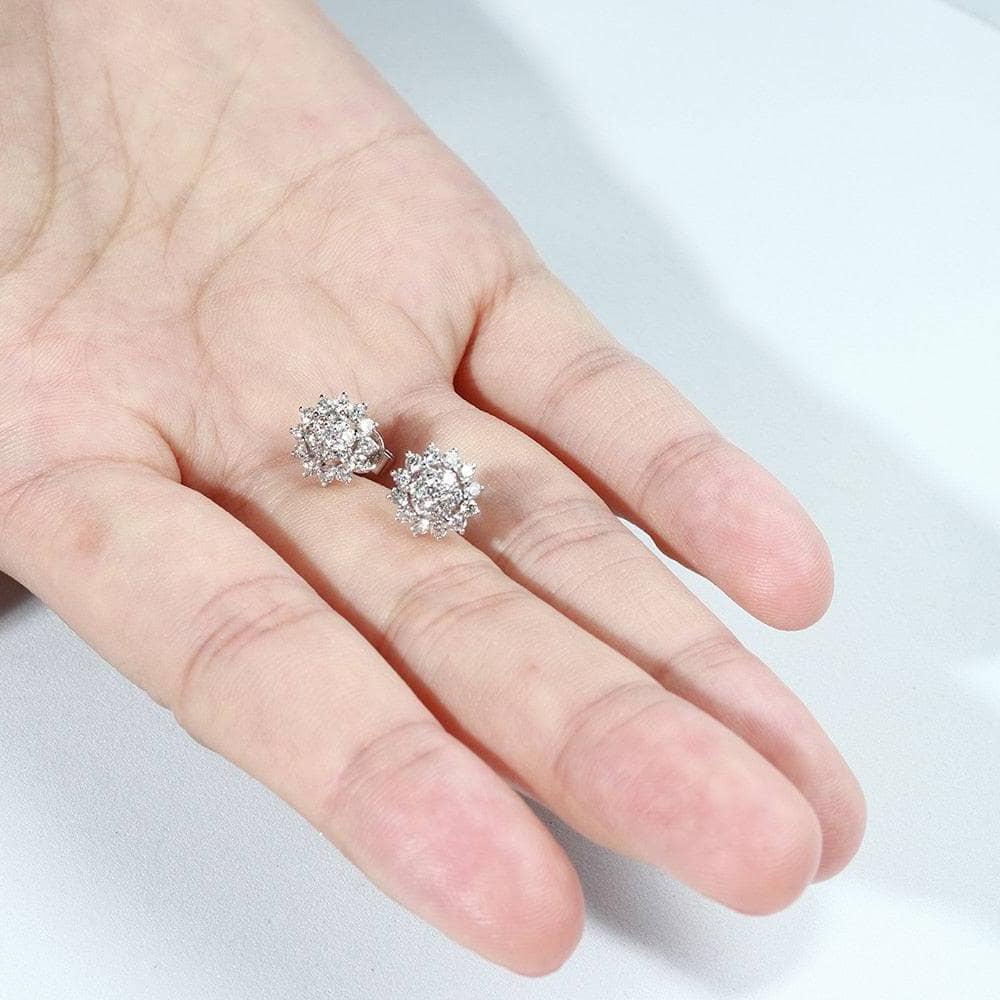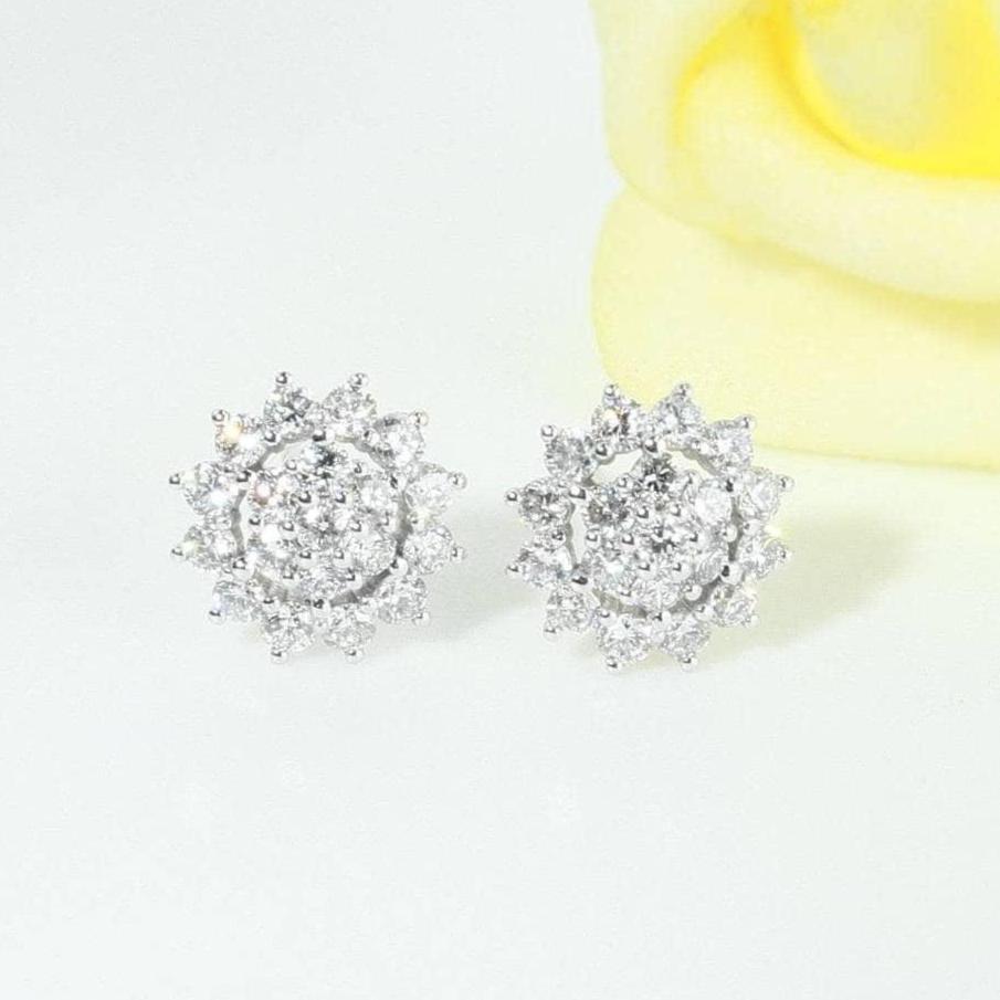 14K White Gold Sunflower Halo CVD Lab Diamond Stud Earrings