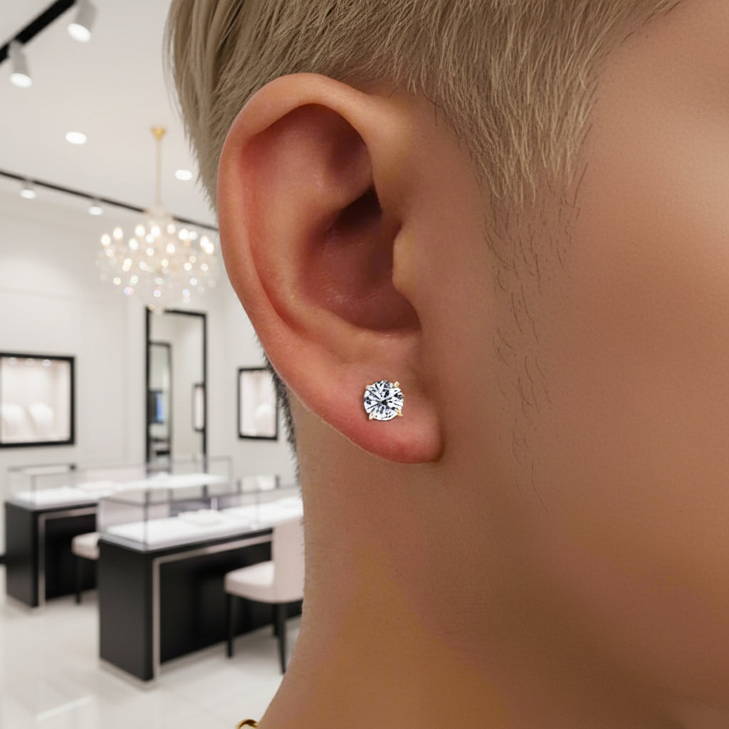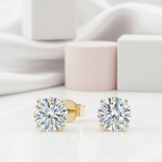 Indulge in elegance with our 14k Yellow Gold 0.8 Ct Sparkling Certified Moissanite Stud Earrings by Black Diamonds New York. These exquisite earrings showcase round cut moissanite stones totaling 0.8 carat, set in a dazzling yellow gold setting. The stunning sparkle of these earrings is sure to turn heads and make you feel like a star. With a combination of high quality craftsmanship and affordability, these earrings are a must-have addition to your jewelry collection.