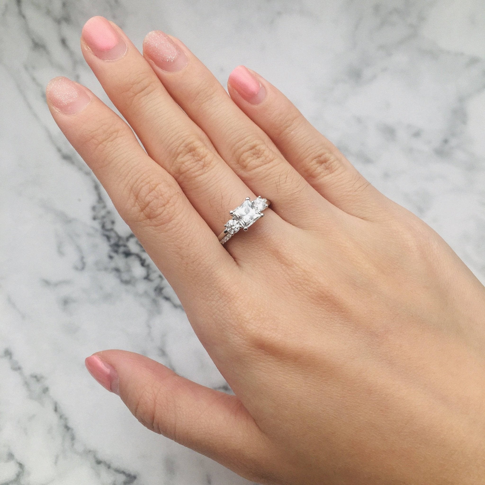 Please note that stone colors may vary slightly depending on the cut, size, stone carat, and type of stones/diamonds being used (e.g., Simulated Diamonds like Sona, Sapphires, Diamond Alternative, and Created Diamonds have more saturated hues compared to moissanite, lab diamonds, natural diamonds, and other gemstones). Please contact our team for more info.