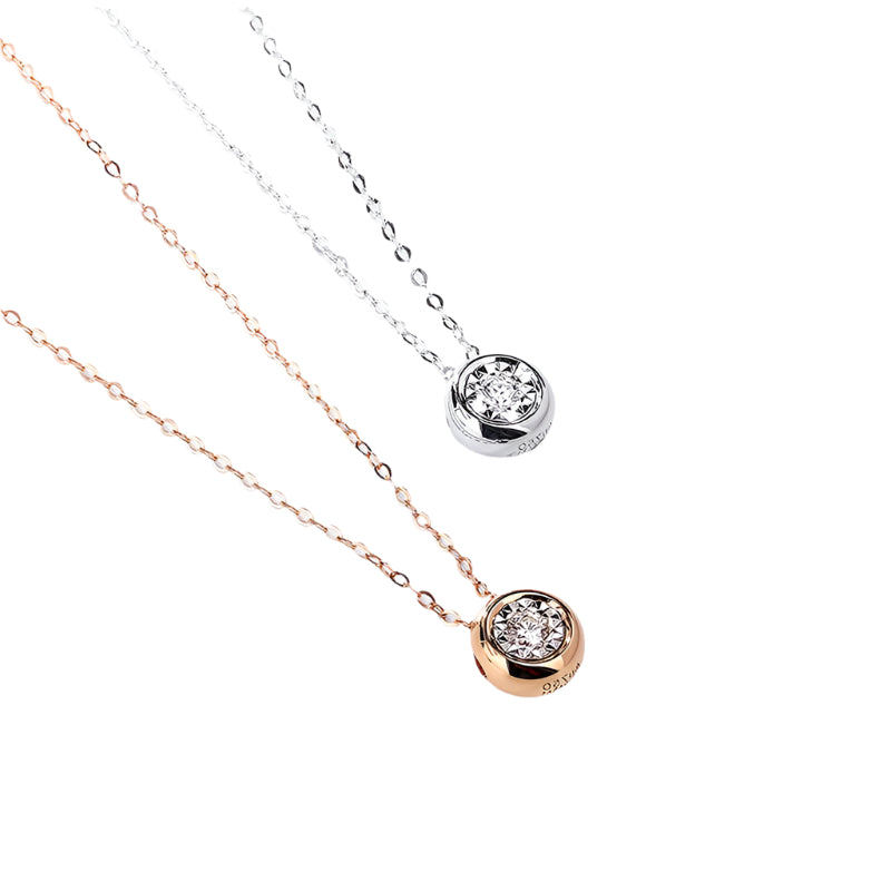 18k Rose Gold Round Diamond Pendant Necklace