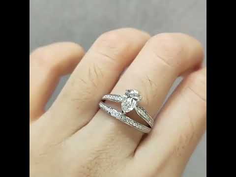 18K White Gold 1.0ct Pear Cut Diamond Water Drop Engagement Ring